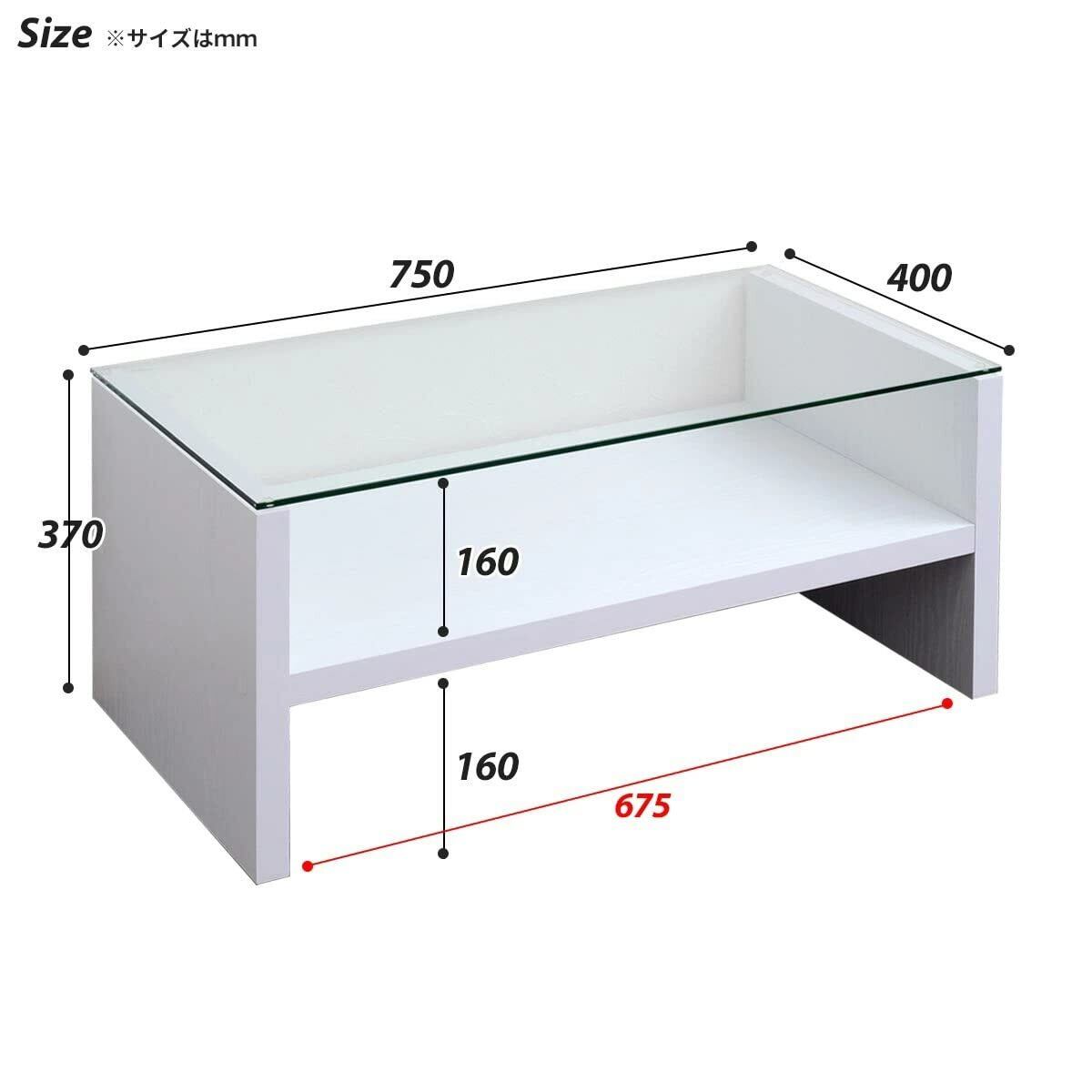 サイズ: 幅750×奥行き400×高さ370mm 素材: 中質繊維板(表面PVC)、8mm強化ガラス 重量: 約12kg 耐荷重: 天板:約20kg 棚板:約20kg 形状: 組立品