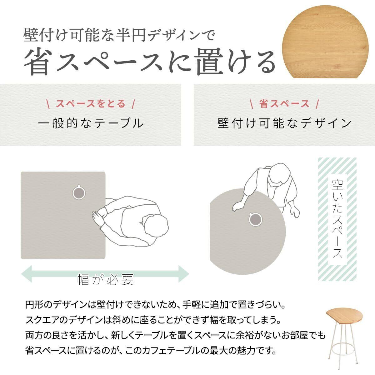 【特徴】放射状に伸びた足がスタイリッシュな円形のカフェテーブル。一部をカットしたハーフムーンの天板で壁付け設置ができるので、省スペースを実現。リビングはもちろんキッチンカウンターやエントランスなど狭い場所でもおしゃれなカフェコーナーに。お家でホッと一息カフェ気分…そんな贅沢な時間のお供に如何でしょうか?