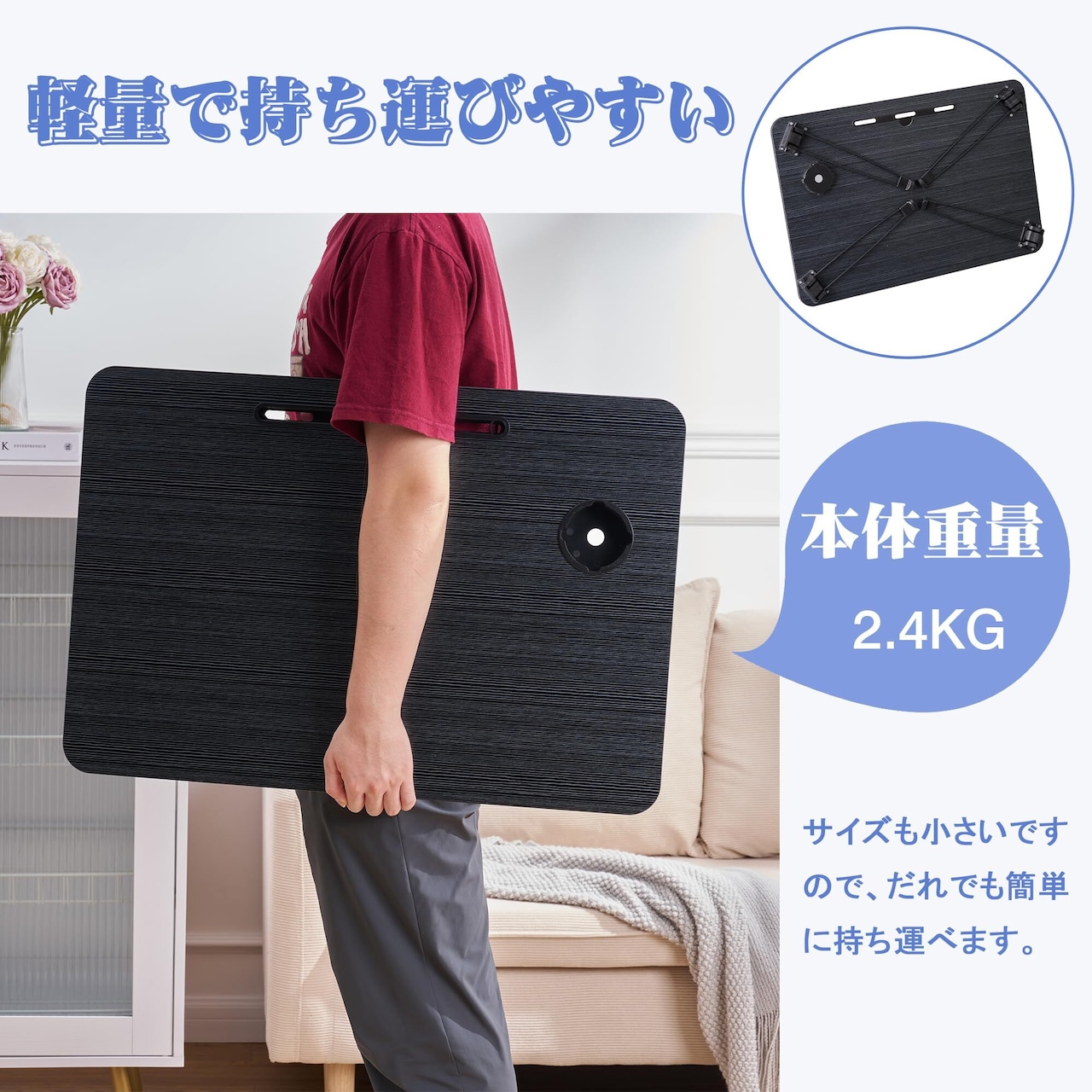 【製品仕様】(サイズ):幅60×奥行40×高さ30cm;折りたたんだ厚み:約5cm;(本体重量):2.4kg;(耐荷重):15kg;(材質):天板/HDF木製、脚部/スチール。※組み立て不要。届いたらすぐ使えます。
