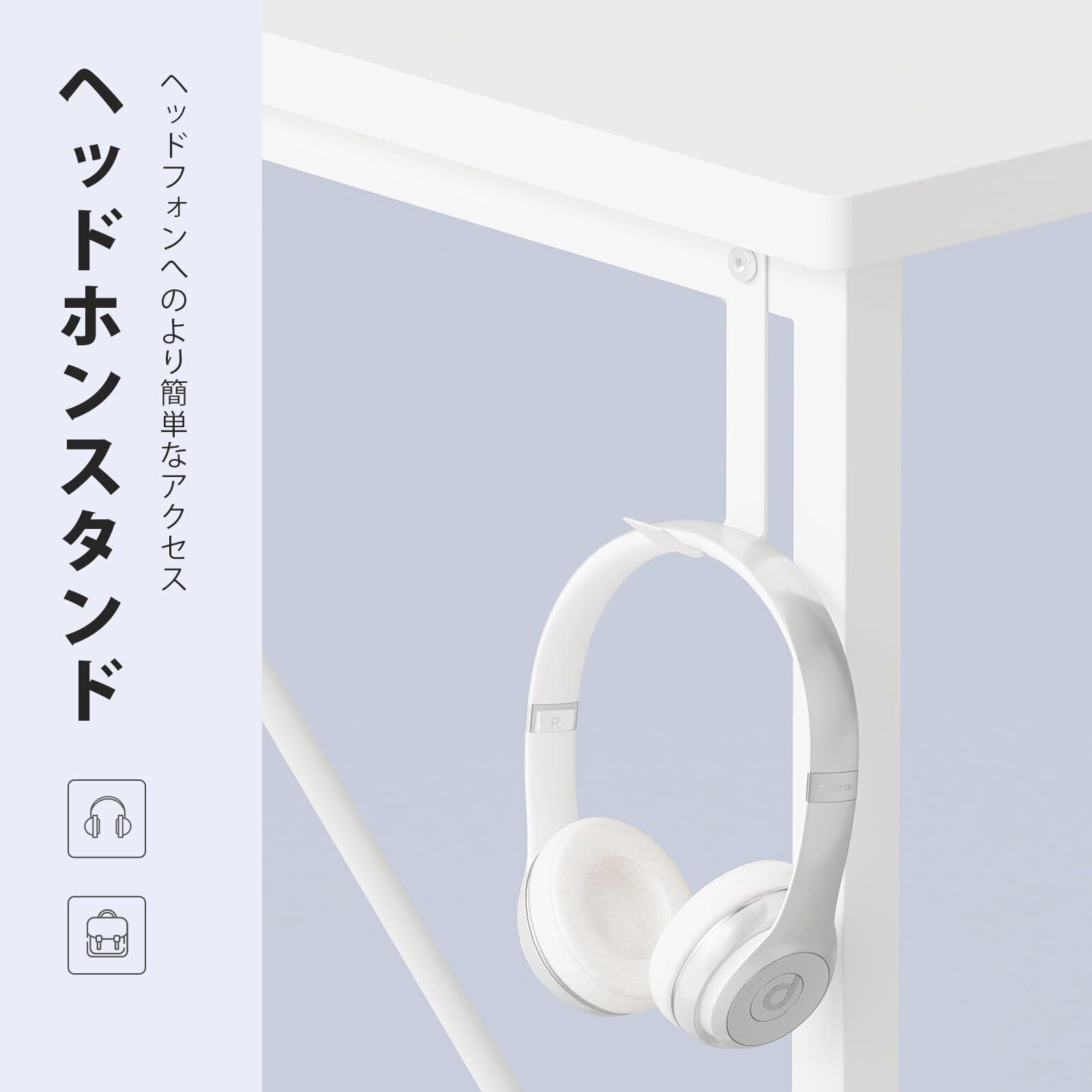 【大きな作業台と収納スペース】デスクの上は大きいので,パソコンと周辺機器を並べて置くことができ、手元がゆったり使える広さがあります。デスクは丈夫な収納袋とフックが付いておりますので、書類、カバン、ヘッドフォンなどの収納がとても便利になり、天板がすっきり片付けられます。