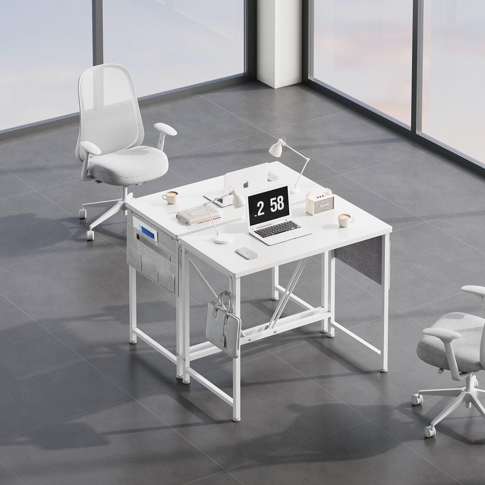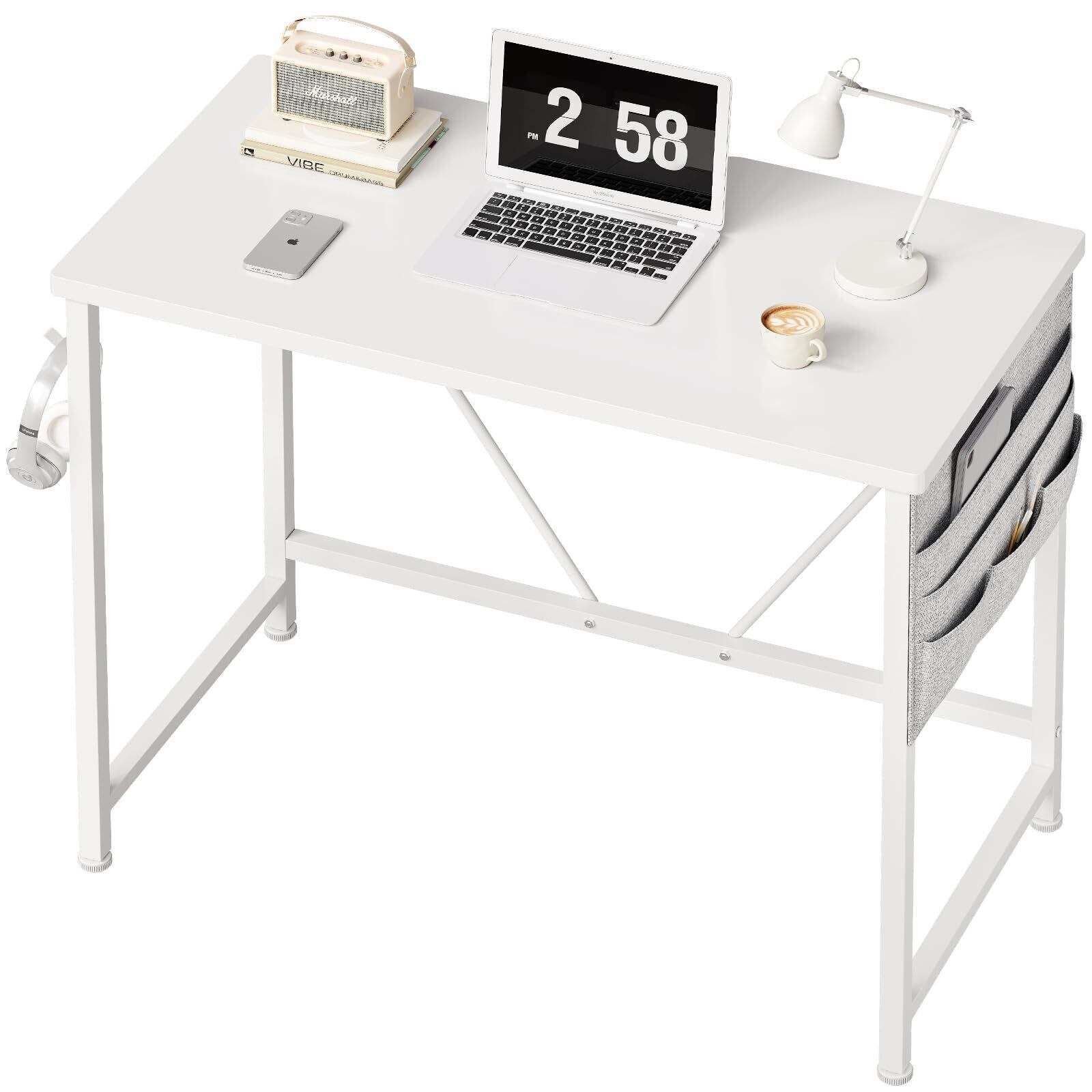 YeTom デスク 机 pcデスク 勉強机 幅80cm パソコンデスク 収納袋付き学習机 小さい つくえ 作業机 在宅 組立簡単 テレワーク 白い
