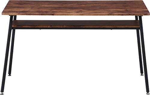 不二貿易 ダイニングテーブル テーブル 2人用 4人用 ヴィンテージ風 木目調 収納棚付き アジャスター付き 角が丸い 幅123.5×奥行75×高さ70cm ブラウン 単品 ナビア 14658