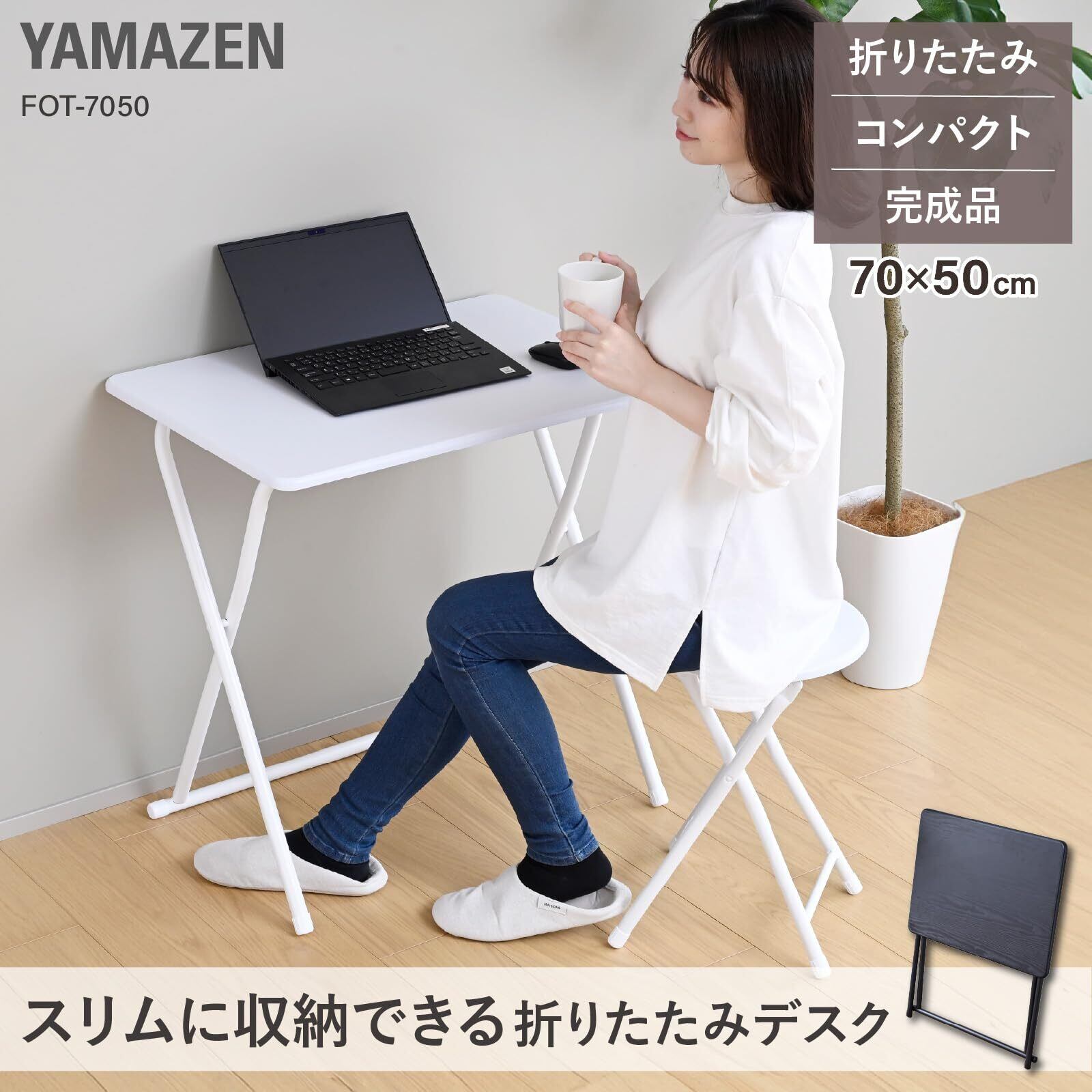 山善(YAMAZEN) 折りたたみデスク 机 コンパクト テーブル 折り畳み パソコンデスク 省スペース 幅70×奥行50×高さ70cm 完成品 ホワイト/マットホワイト FOT-7050(WH/NMW)