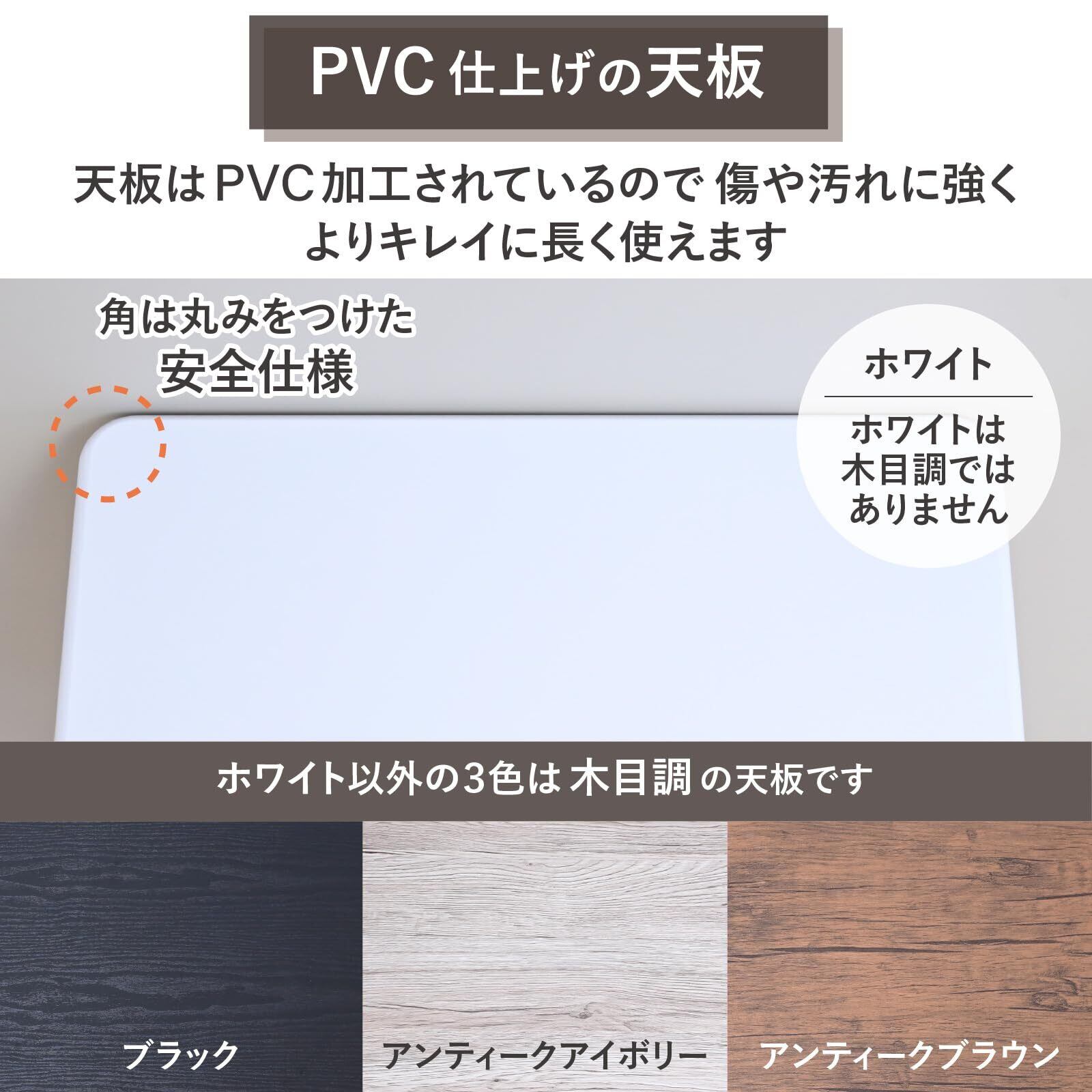 【キズや汚れがつきにくい】シンプルなデザインでどんなお部屋にもなじみやすいです。天板表面はPVC加工されているので、傷や汚れがつきにくいです。