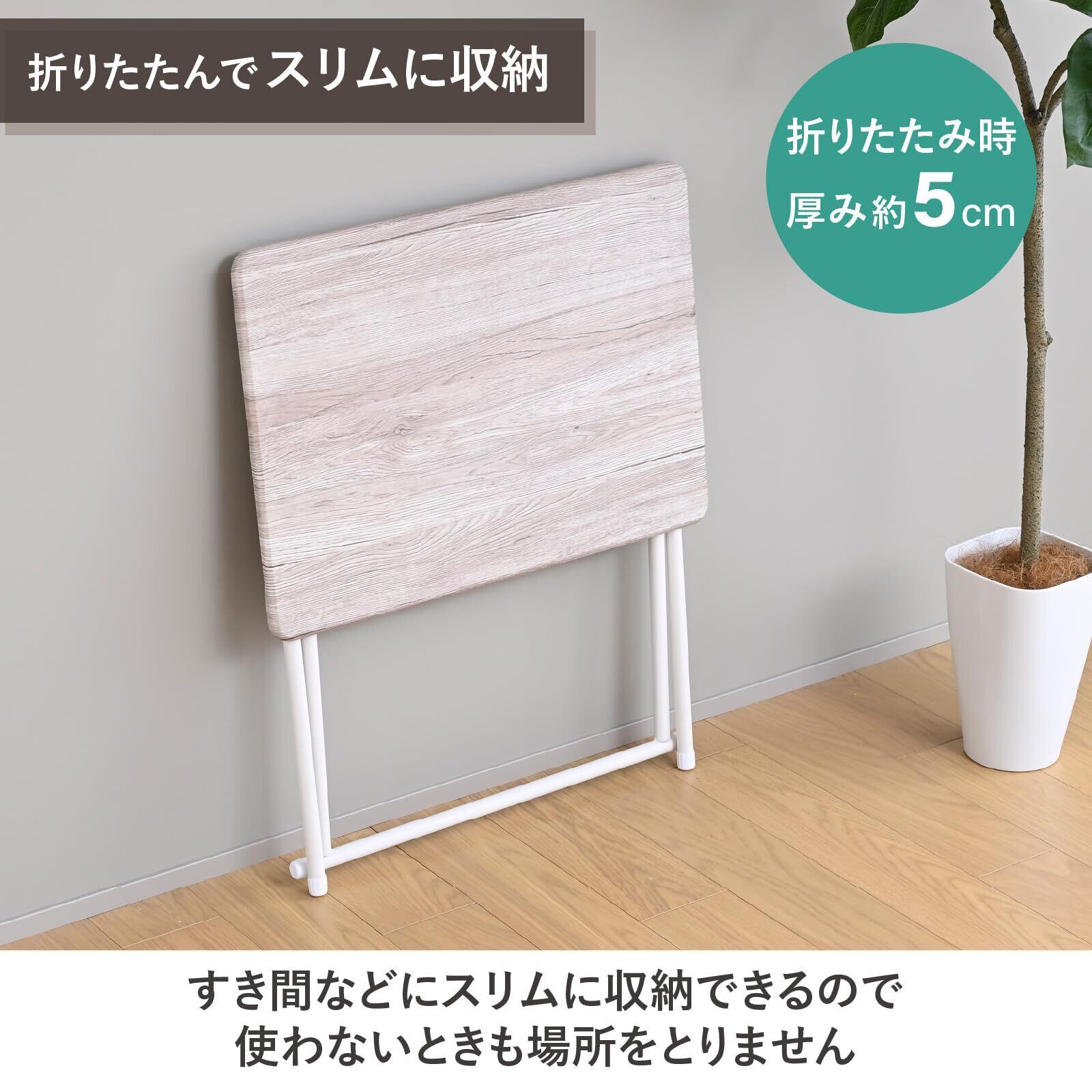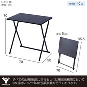 ●サイズ(約) : 幅70×奥行50×高さ70cm●折りたたみ時 : 幅70×奥行5×高さ85.5cm●構造部材 : フレーム/金属(スチール)●甲板の表面材 : 合成樹脂化粧繊維板(塩化ビニル樹脂)●表面加工 : フレーム/エポキシ樹脂塗装