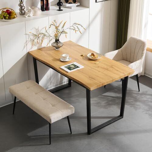 【温もりを感じる木目調デザイン】 ナチュラルでおしゃれな木目調仕上げが、ダイニング空間を上品に演出。 レトロで落ち着いた雰囲気が、毎日の食事を特別な時間にしてくれます。 「安定感 × 広々スペース × 洗練デザイン」このテーブルで、理想のダイニングを
