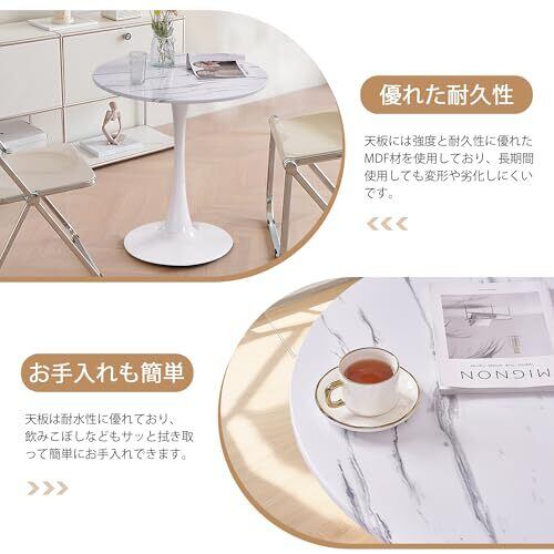 VECELO 丸テーブル ダイニングテーブル 直径70×高さ73cm カフェテーブル 食卓 円形 組み立て簡単 大理石調
