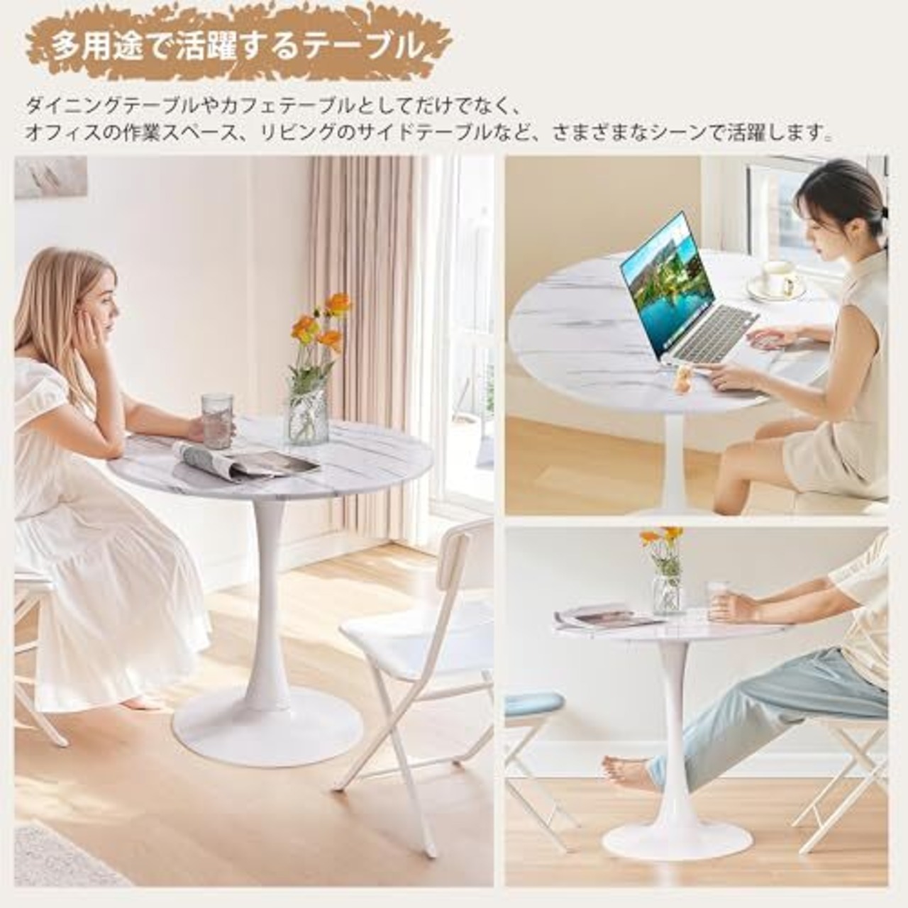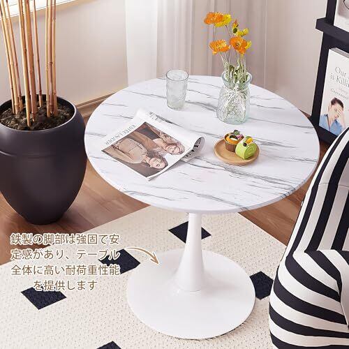 【シンプルでエレガントなデザイン】シンプルでありながらエレガントなテーブルで、美しい円形の天板は、モダンで洗練された雰囲気を醸し出し、どんなインテリアにも簡単にマッチします。清潔感のあるカラーは、空間を明るくし、他の家具や小物との調和も抜群です。オフィスやカフェ、家庭用としても使いやすく、どんなスタイルの部屋にも自然に溶け込みます。