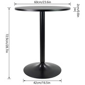 KKTONER バー丸テーブル カウンターテーブル カフェテーブル 2人用 ダイニングテーブル 机 幅60cm ブラック (黒)
