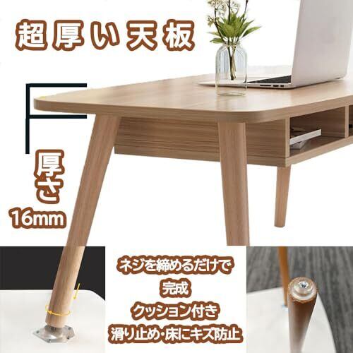 【足元ゆったり】足元ゆったりくつろげる、座りながら、あぐらもかけて足を伸ばすことも可能、足元の空間の高さは約42cmで広々としているのでゆったり足を伸ばしてくつろげます。パソコンとドリンクを置いて作業するのによいサイズ感で、狭い部屋においても、違和感のない一人暮らしテーブルです。