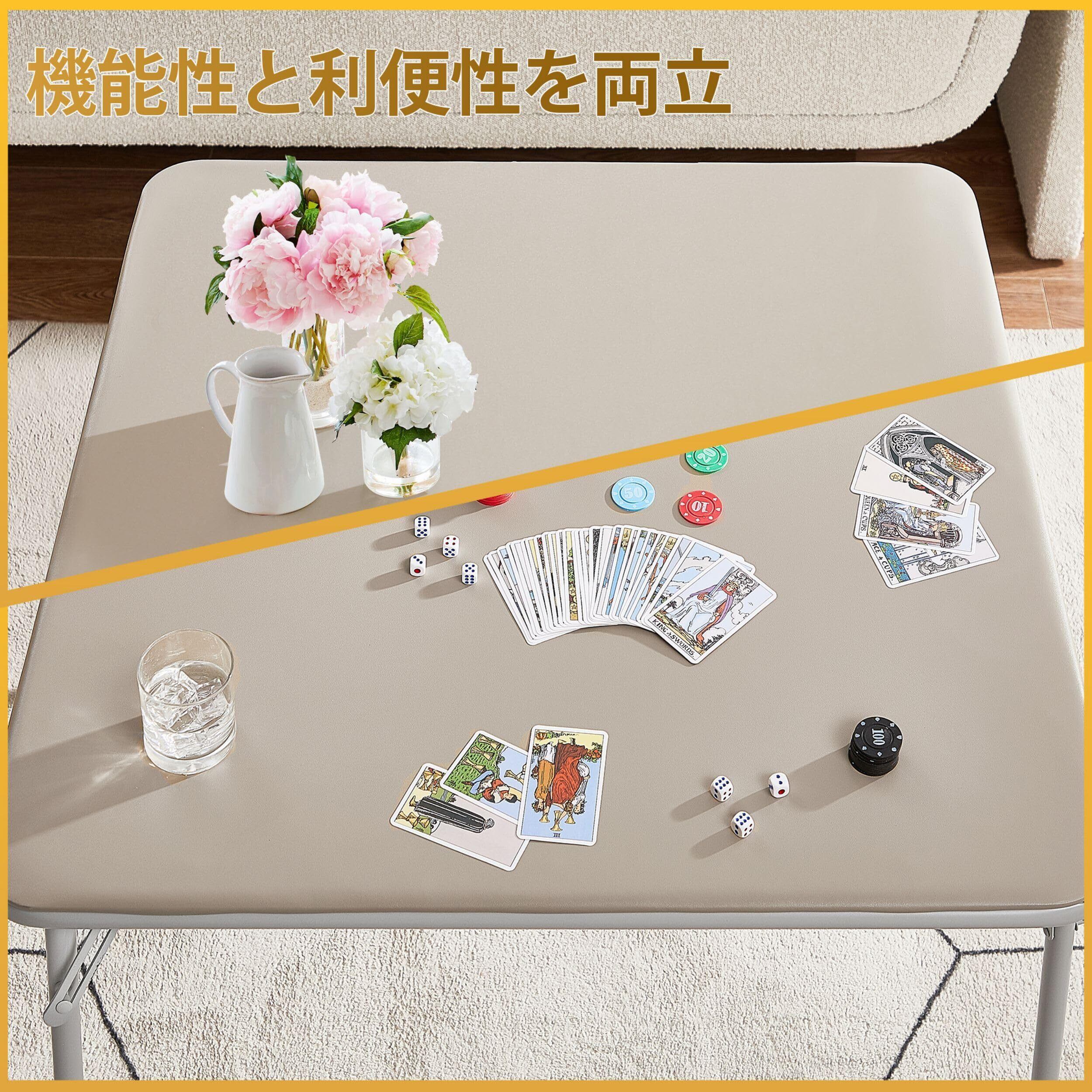 VECELO 折りたたみ テーブル ダイニングテーブル 幅86×奥行86×高さ71cm 正方形 省スペース 食卓 麻雀卓 ゲーム 作業 アウトドア コンパクト シンプル 完成品 組立不要 ベージュ 【日本正規輸入品】