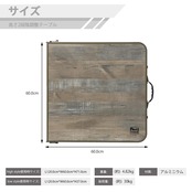 【素材】:材質:アルミニウム 他:天板/メラミン加工合板 サイズ:使用時:約120×60×高さ71/37cm、収納時:約60×60cm 本体重量 : 4.82kg 耐荷重:30kg