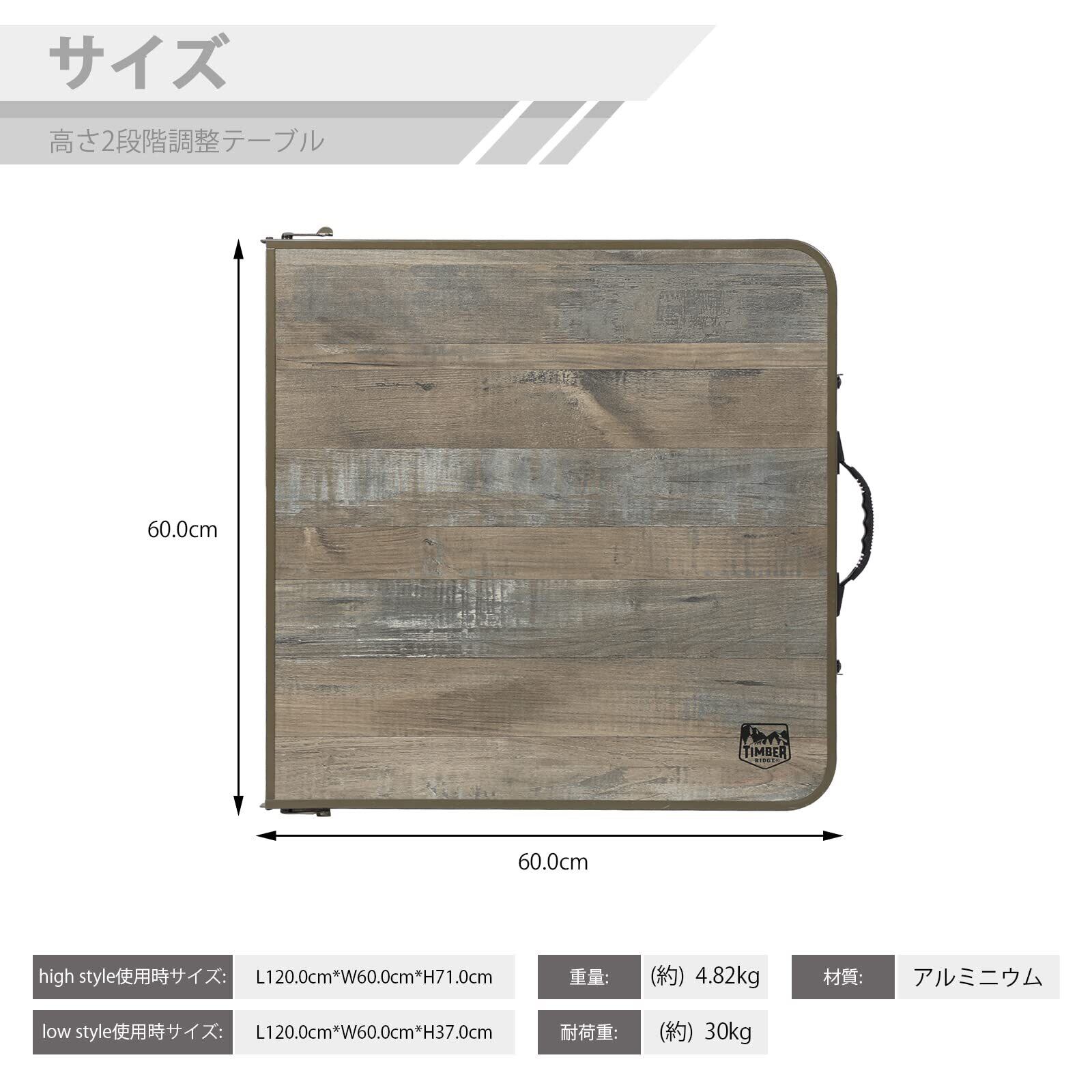 TIMBER RIDGE アウトドア 折りたたみ テーブル 高さ2段階調整可能 アウトドア レジャー キャンプ ロースタイル