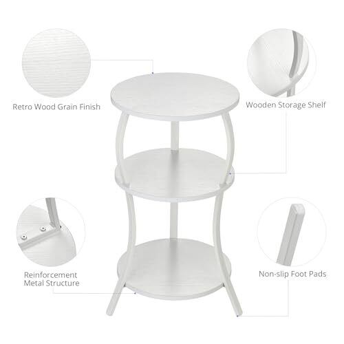 ZEXVIDA レトロ風 丸 テーブル - 幅30×奥行30×高さ55cm (ホワイト)