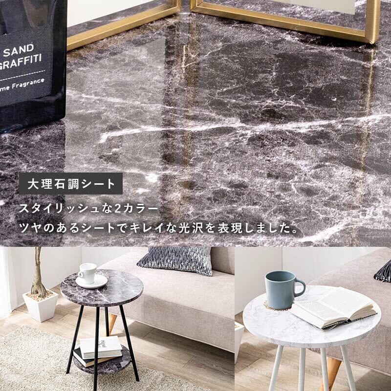 萩原(Hagihara) サイドテーブル 丸型 机 ナイトテーブル ソファサイドテーブル 耐水 軽量 約3kg 大理石調 モダン 幅40×奥行40×高さ54 ブラック LST-4660MBK