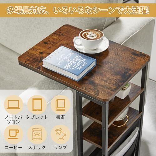 【コ字型テーブル&魅力的なデザイン】よりスタイリッシュなサイドテーブルはコ字型、ソファやベッドの下のスペースに入れ、隙間に差し込んでも使えます。ソファのサイドテーブルやリビングのサイドテーブルとしても使えます。このサイドテーブルは何度も設計しなおし、きめ細かに磨いて、やっと仕上がった作品です。コンパクトで移働便利で、リビングルームに置いてコーヒーを飲んでも、バルコニーや庭に置いて花などを並べても、環境と調和しています。