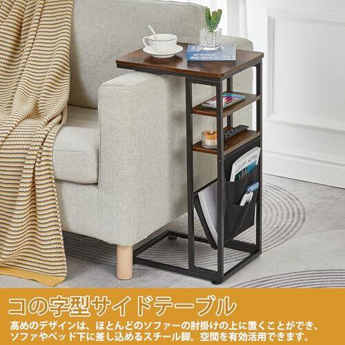 ZEXVIDA サイドテーブル コの字型ベッドテーブル ソファーテーブル ナイトテーブル リビングテーブル 棚付き 引き出し 幅40×奥行30×高さ71cm