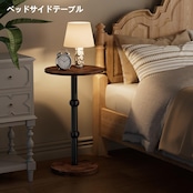 【レトロエレガントなデザイン】太い黒色メタル脚と木目調の丸型サイドテーブルが、魅力的な視覚効果を生み出します。重量感のあるベース設計で安定性抜群、清潔しやすい天板と古風な木目調が、リビングやベッドルームの雰囲気をワンランクアップさせます。自然素材のインテリアにも完璧にマッチするコーヒーテーブルで、毎日のくつろぎタイムがより特別なものになります。