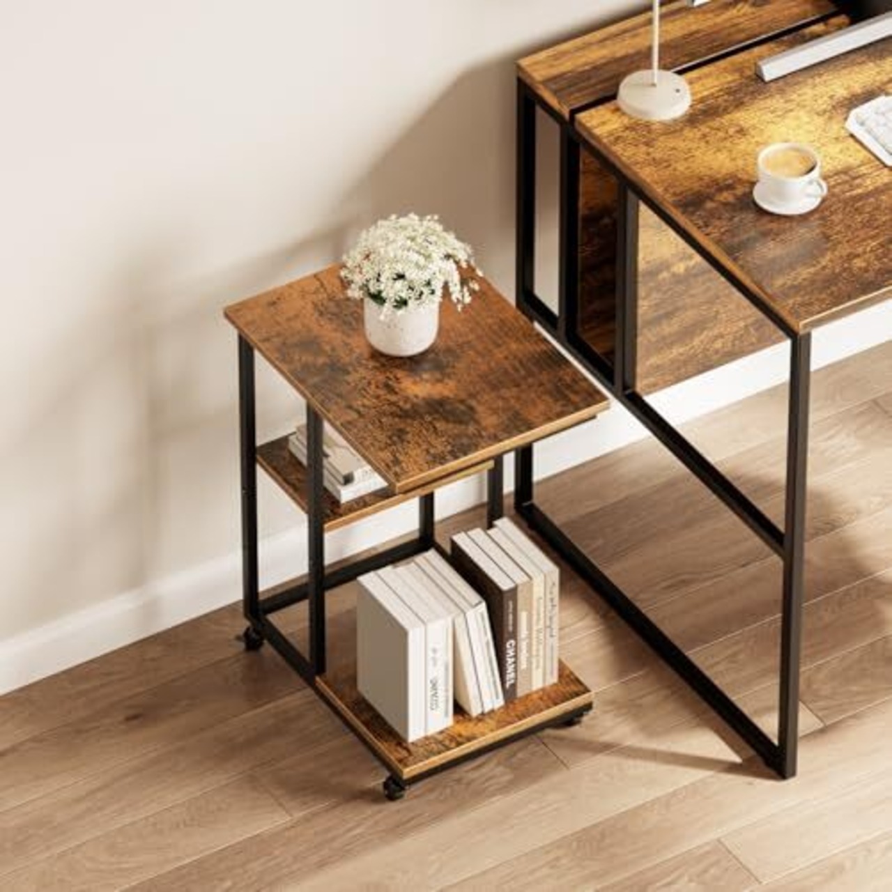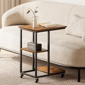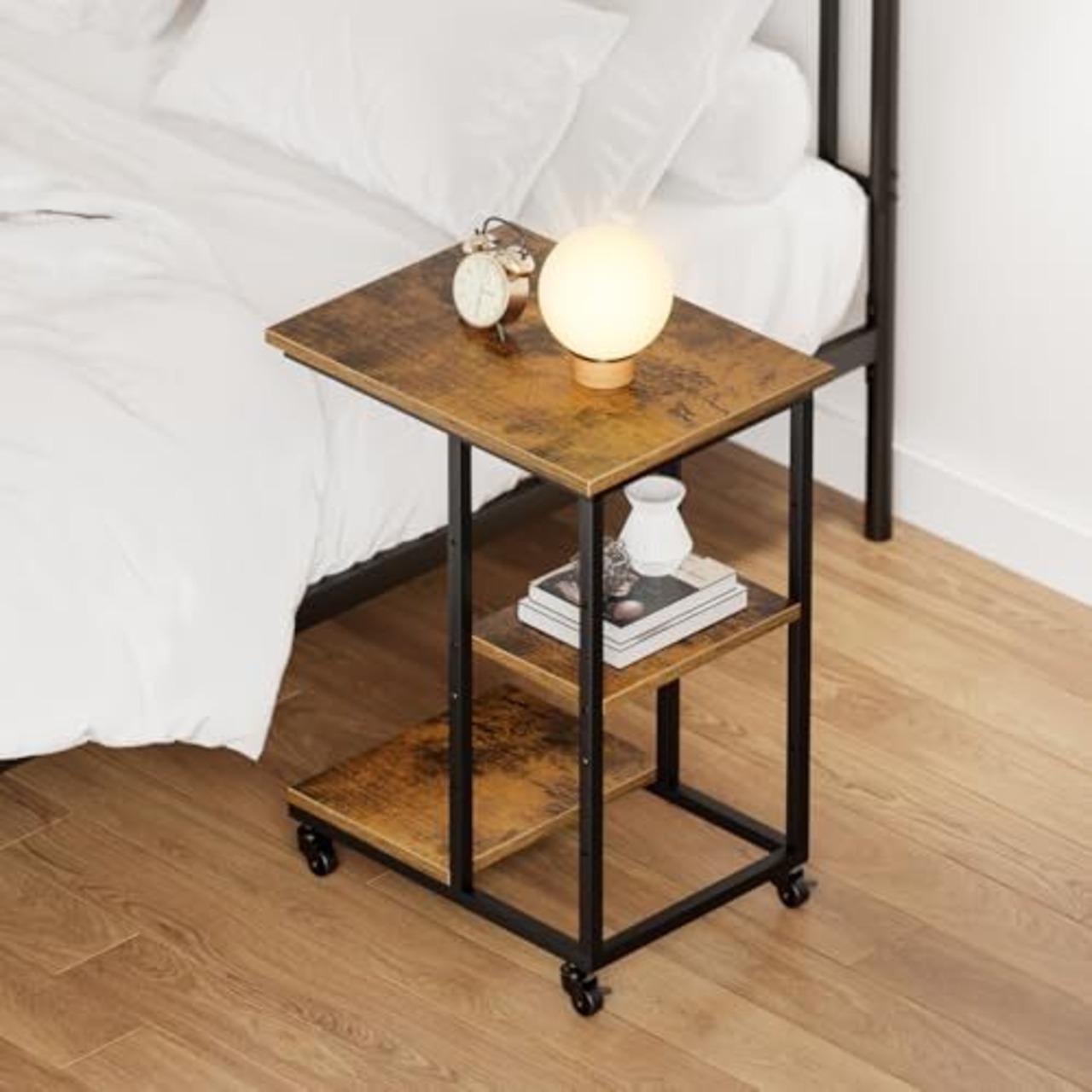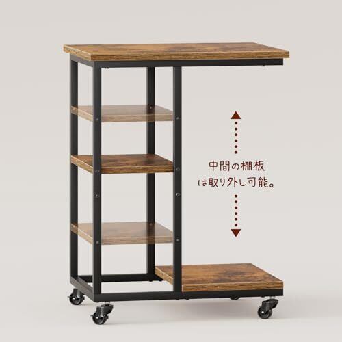 kukeimaru サイドテーブル キャスター付きサイドテーブル 可移動ベッドテーブル コの字型デザイン テーブル 幅40×奥行き30×高さ54cm レトロブラウン