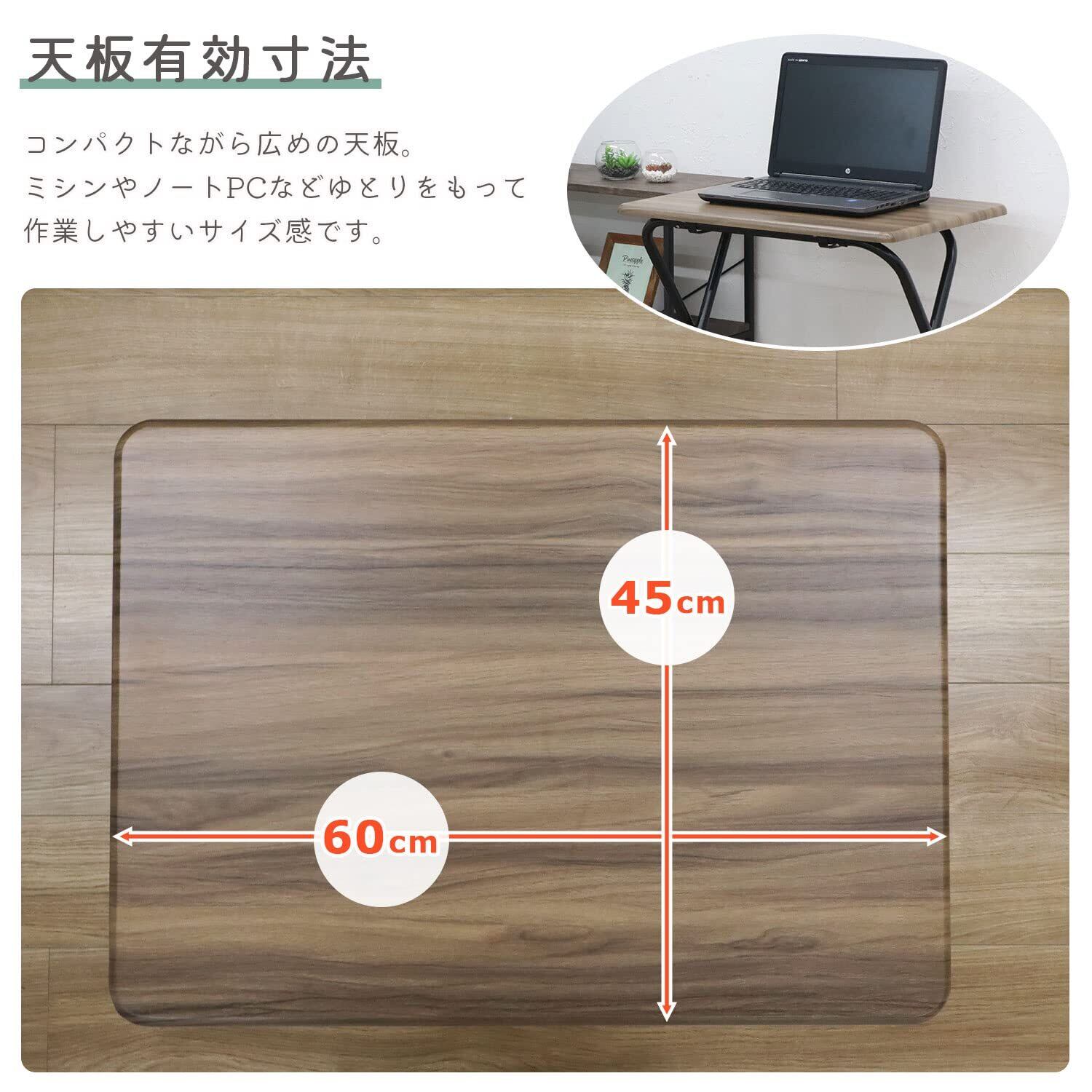 商品サイズ(約):幅60×奥行54.5×高さ71.5cm、天板サイズ(約):幅60×奥行45cm、折畳サイズ(約):幅60×奥行5×高さ87.5cm