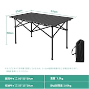 GFUN アウトドア テーブル 折りたたみ 軽量 コンパクト 95cm/120cm 耐荷重100kg 折り畳みテーブル ロールテーブル キャンプ バーベキュー ハイキング ピクニック 収納バッグ付き