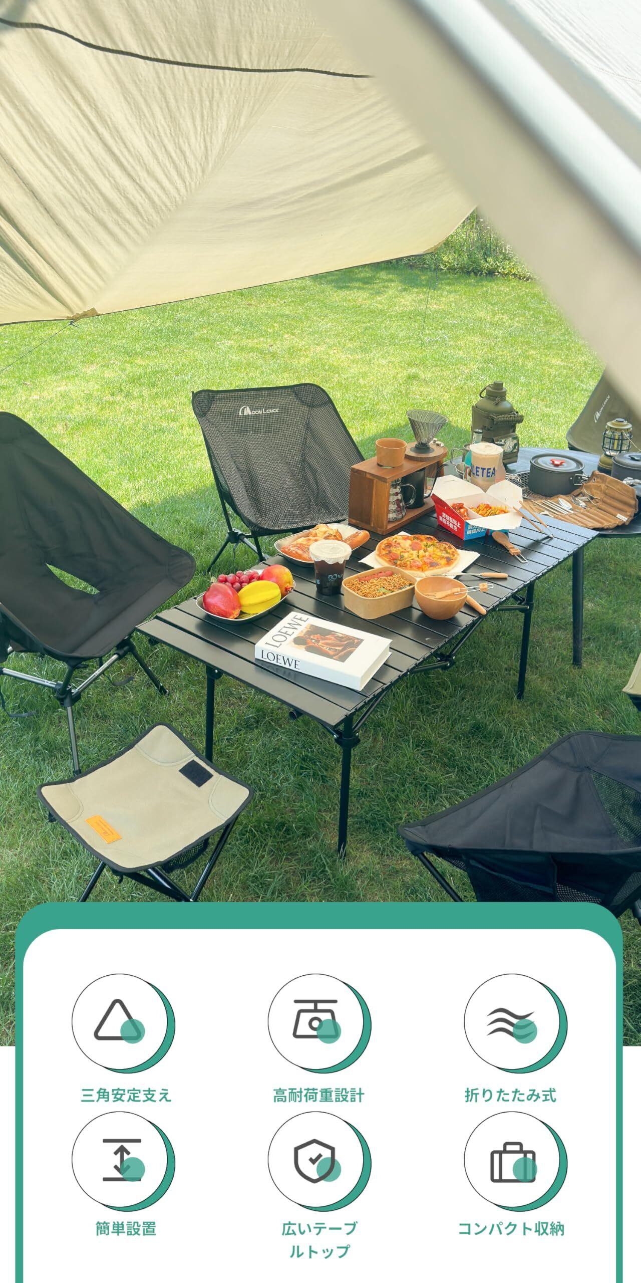 【ゆったり広々な大判サイズ|大人数キャンプに最適】最大幅95cmの大きい キャンプ テーブル。複数人での使用や調理スペースにも余裕。グループキャンプやファミリーキャンプにぴったり!