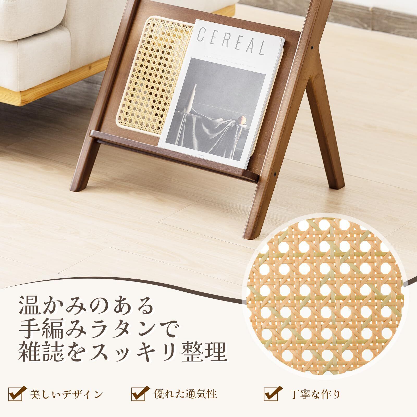 Giantex サイドテーブル 竹製 ス字形 幅50x奥行き36x高さ56cm ナチュラル ガラス天板 三角構造 組立簡単 ラタン編み雑誌棚 雑誌収納 小物置き コーヒー テーブル ナイトテーブル 小さい ベッド横 ソファー横 電話台 コンパクト 寝室 書斎 リビング (ス字形 ウォールナット)