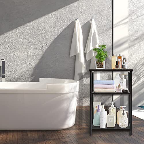 IBUYKE サイドテーブル コンパクト ヴィンテージ風 ナイトテーブル 多機能 オープンラック 3段 収納ラック アジャスター付 小物置き 組立簡単 おしゃれ 39x29x59cm JPTMJ403B