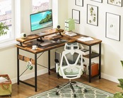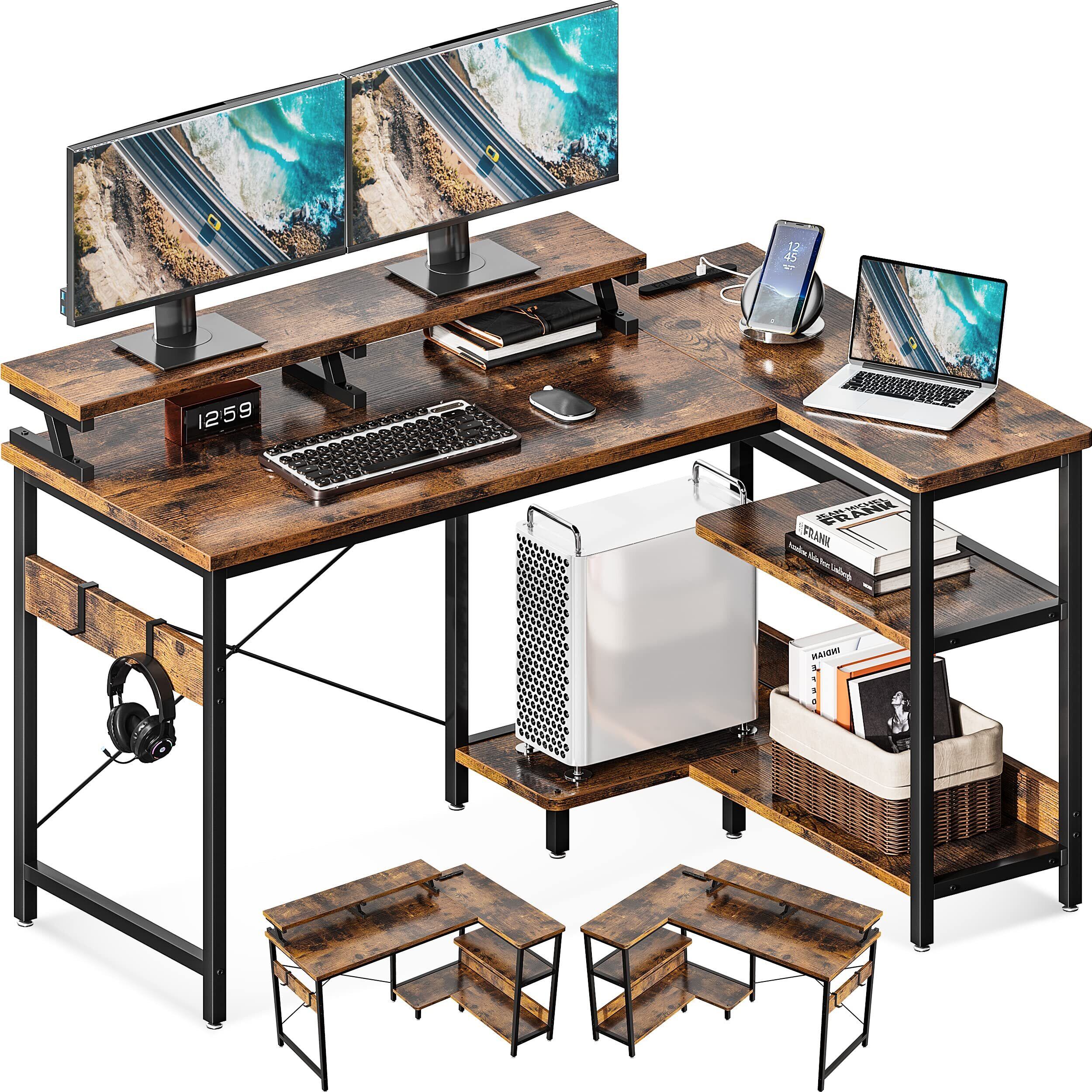 ODK l字デスク パソコンデスク L字型 ゲーミングデスク デスク 机 幅120cm コンセント付き desk PCデスク ラック付き 収納 オフィスデスク 省スペース 書斎 在宅勤務 組立簡単 ビンテージ