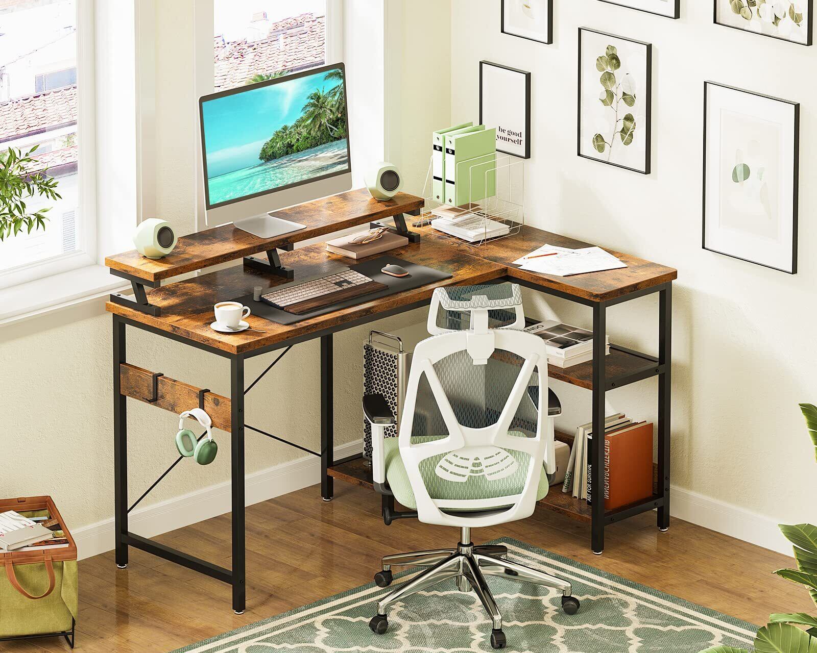 【ゲームと仕事両立】L字ゲーミングデスクは実用性が高く、ゲームプレイ、在宅勤務、勉強机、書斎机など様々なシーンで大活躍!お部屋のレイアウトに合わせてラックの位置を変更できます。モニター台を利用し、目線をあげて作業時の姿勢を改善し、テレワークが快適になり、作業効率も格段に上がります。