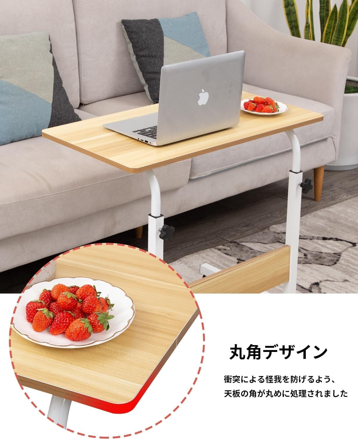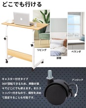Kira Taku サイドテーブル 高さ調節 キャスター付き 昇降式サイドテーブル 可動式テーブル 移動便利 介護 パソコン ソファー ベッドサイド 幅60/80cm 組立簡単 説明書付き (ナチュラル, 80CM)