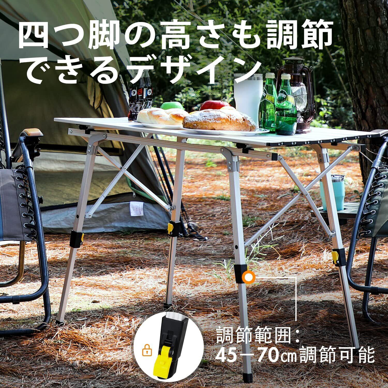 Timber Ridge アウトドアテーブル 折りたたみ 高さ調節 耐荷重30kg アルミ ロールテーブル 収納袋付き コンパクト キャンプ用 90L*53W*45-70Hcm 重量4.2kg