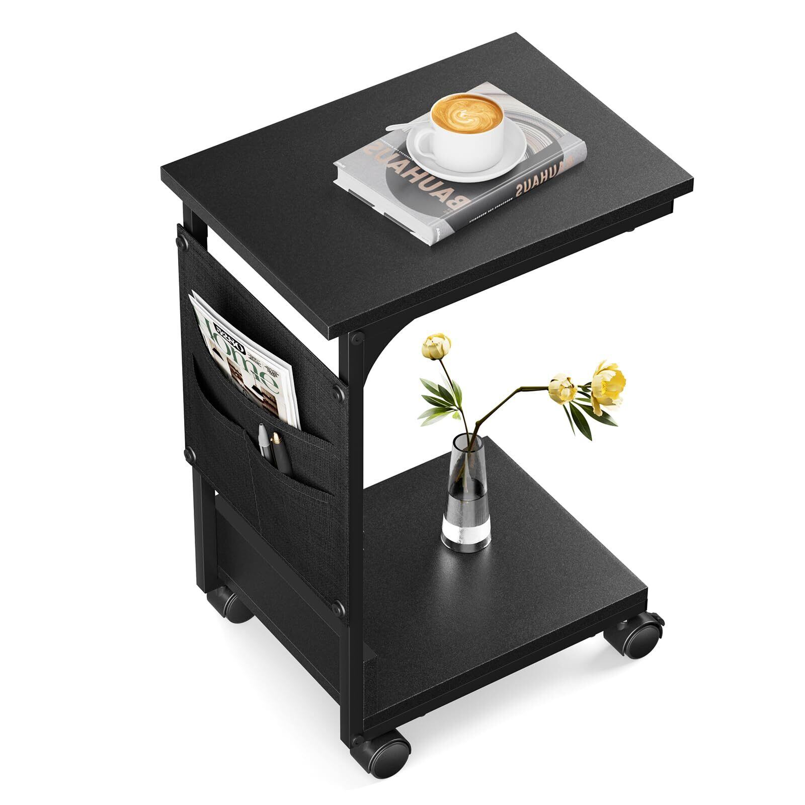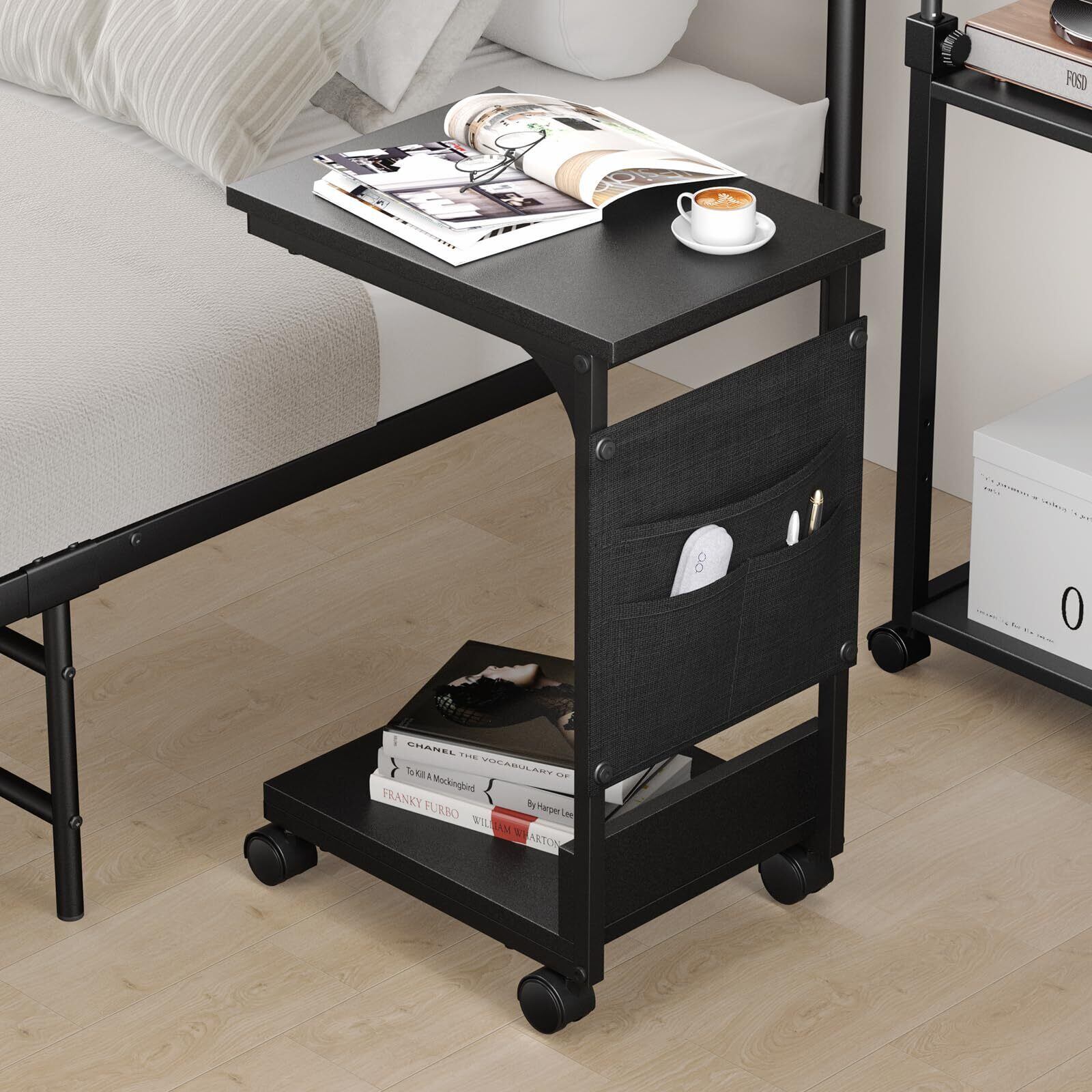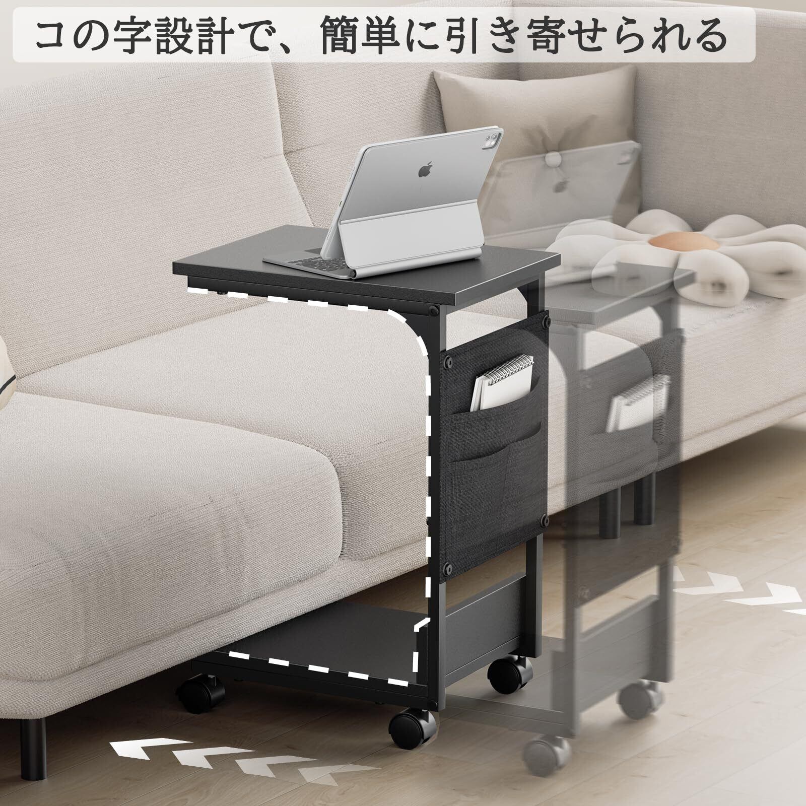 サイドテーブル キャスター付き DAIWIN ナイトテーブル サイド テーブ ル ベッド横 おしゃれ 幅37×奥行26×高さ54cm アジャスター付き コの字 移動便利 ソファ サイドテ ーブル スリム 小型 ミニテーブル コーヒーテーブル (ブラック)