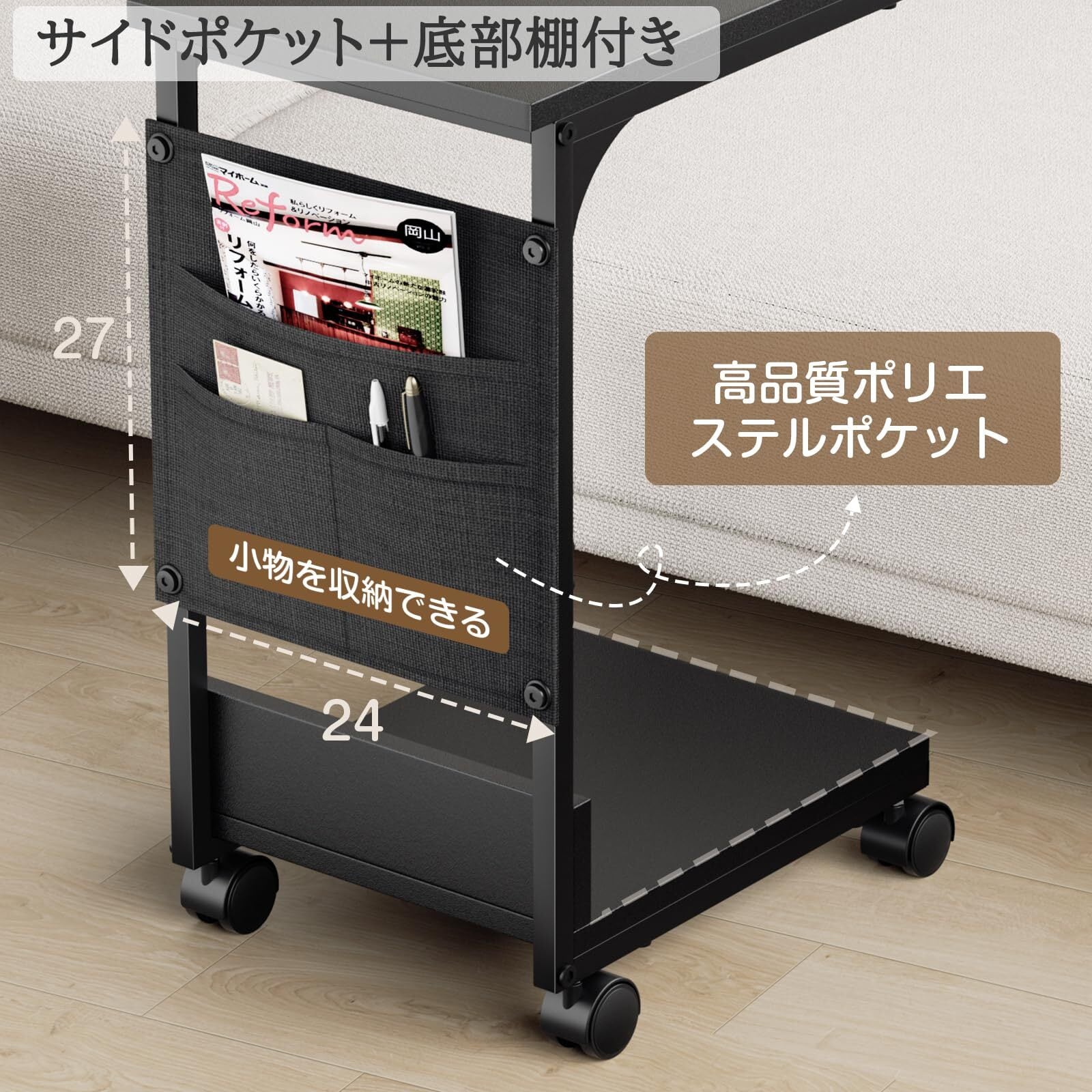 【サイドポケット付き】サイドテーブルの背面に小物を収納できるポケットが付き、部屋を片付いた状態でキープしやすくなります。ひとつのポケットは三つの仕切りで、リモコン、雑誌、iPad、スマホ、充電器、ティシュー、文房具、財布、間食、化粧品、メガネ等通常使用の小物がまとめれて、必要な物はすぐに取り出せて、机もスッキリになります。ヘッドサイドポケットと底板トレーを収納スペースとして利用できます。