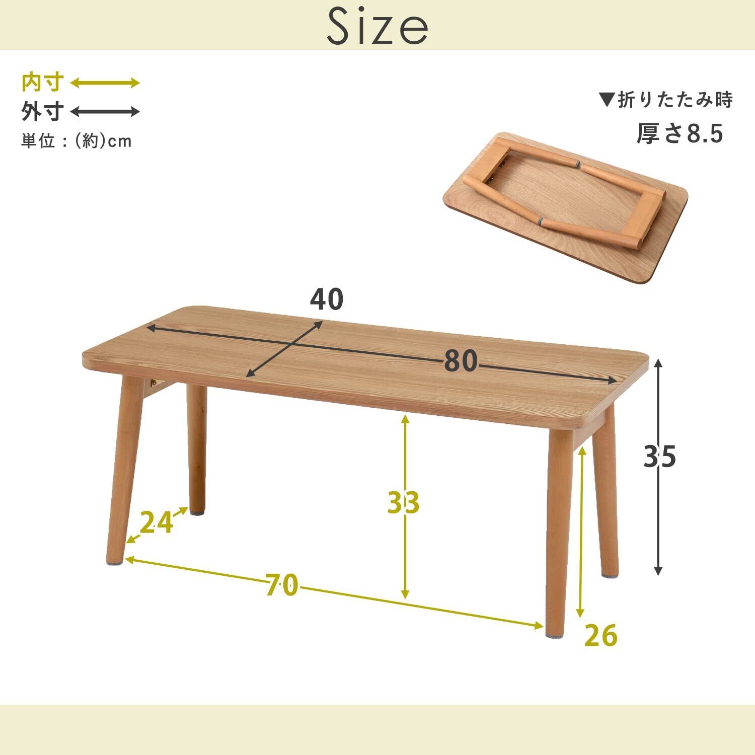 天然木の木目を楽しむ折れ脚テーブル。熱や傷に強いUV塗装仕上げ。幅80cm