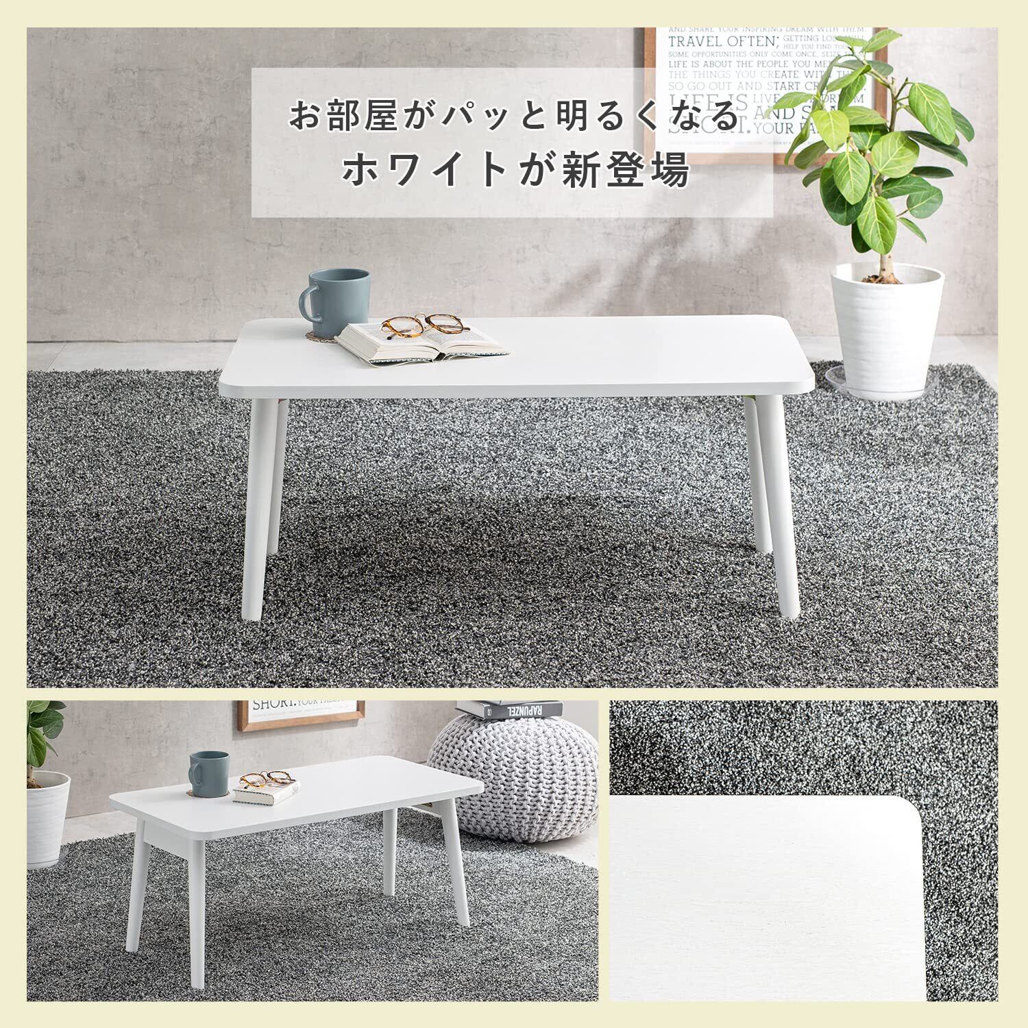 萩原 ローテーブル テーブル 折りたたみ スリム 【天然木 タモ材使用】 天然木 ホワイト 完成品 幅80 奥行40 高さ35 MT-6280WS