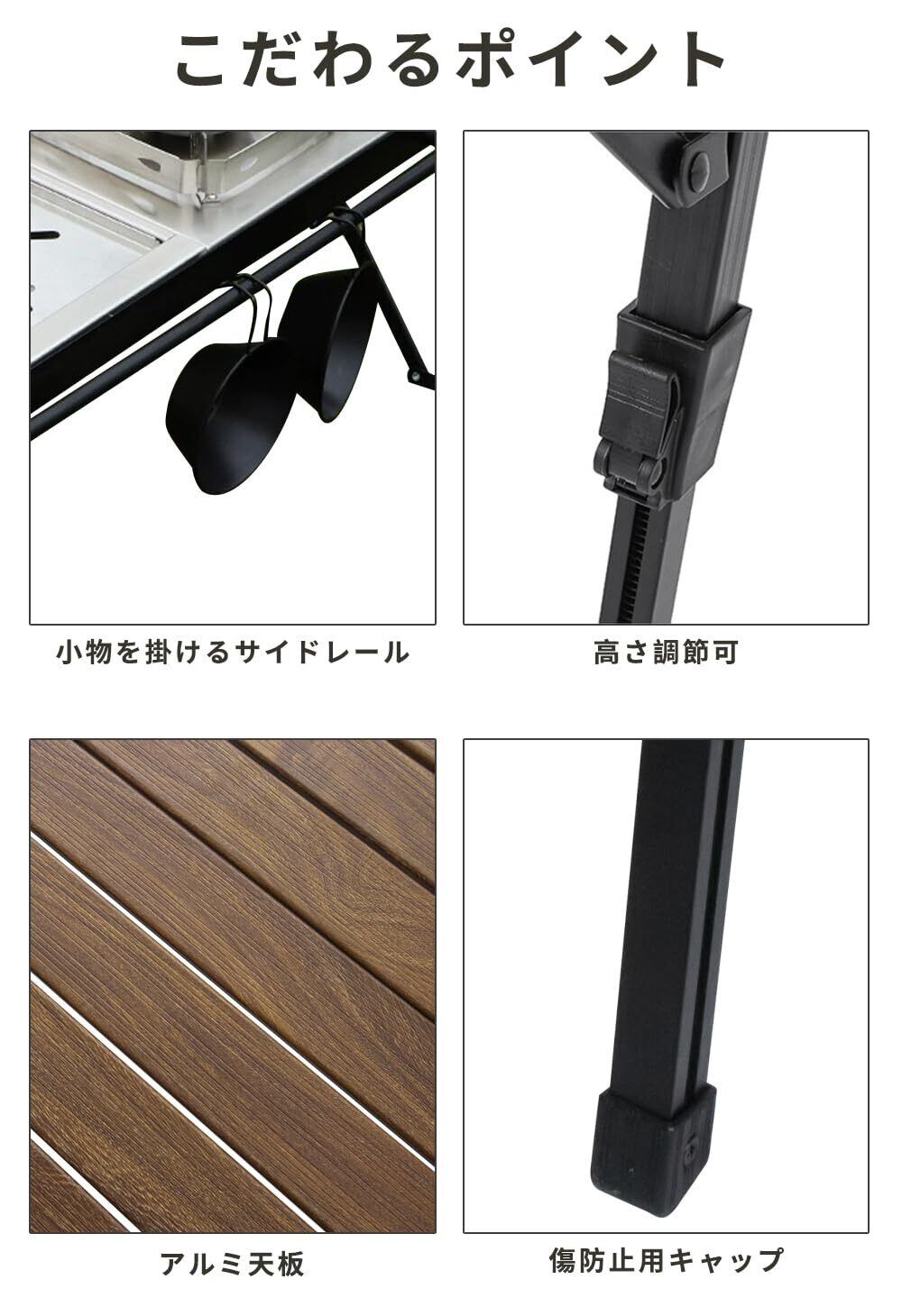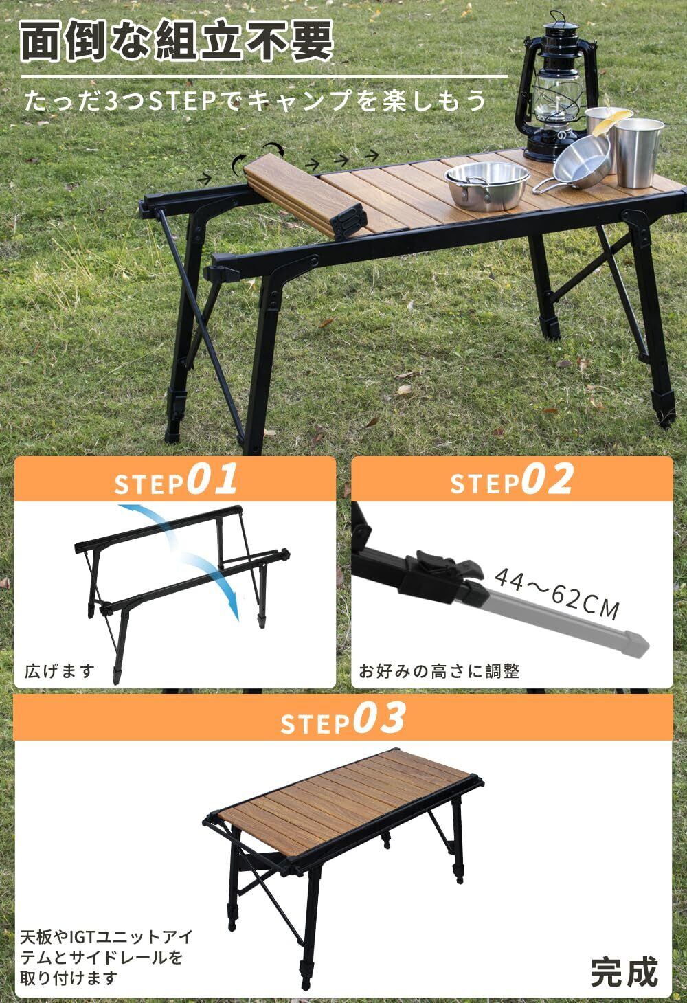 「次世代 組立不要IGTテーブル 」 アウトドアテーブル キャンプテーブル 折り畳み 高さ43~66cm調節可能 吊り下げ用サイドレール付き アルミ 軽量 3ユニット コンパクト igt対応 焚き火テーブル マルチキッチンテーブル バーベキュー 収納袋付き(濃い木目調)