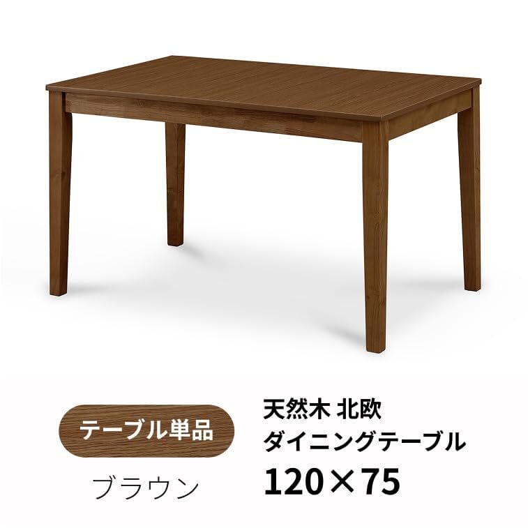ダイニングチェア用のダイニングテーブル 天然木 北欧 ブラウン 長方形120x75cm