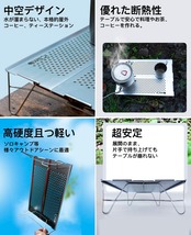 【高強度、耐熱、良い耐久性】高強度ステンレス鋼足フレームでテーブルを一旦セットアップできたら、搬送の時、簡単にバラバラがなれない、地面からも低い、高いテーブルより安定です。アルミ天板の中空デザイン、超軽量且つ通気性が良い、お湯や水が溜まらない、コーヒーやティーテーブルとして使用できます。天板表面サンドブラスト・アルマイト処理で防水、防錆、耐腐食、耐高温、傷も付きにくい、良い耐久性で長持ちです。