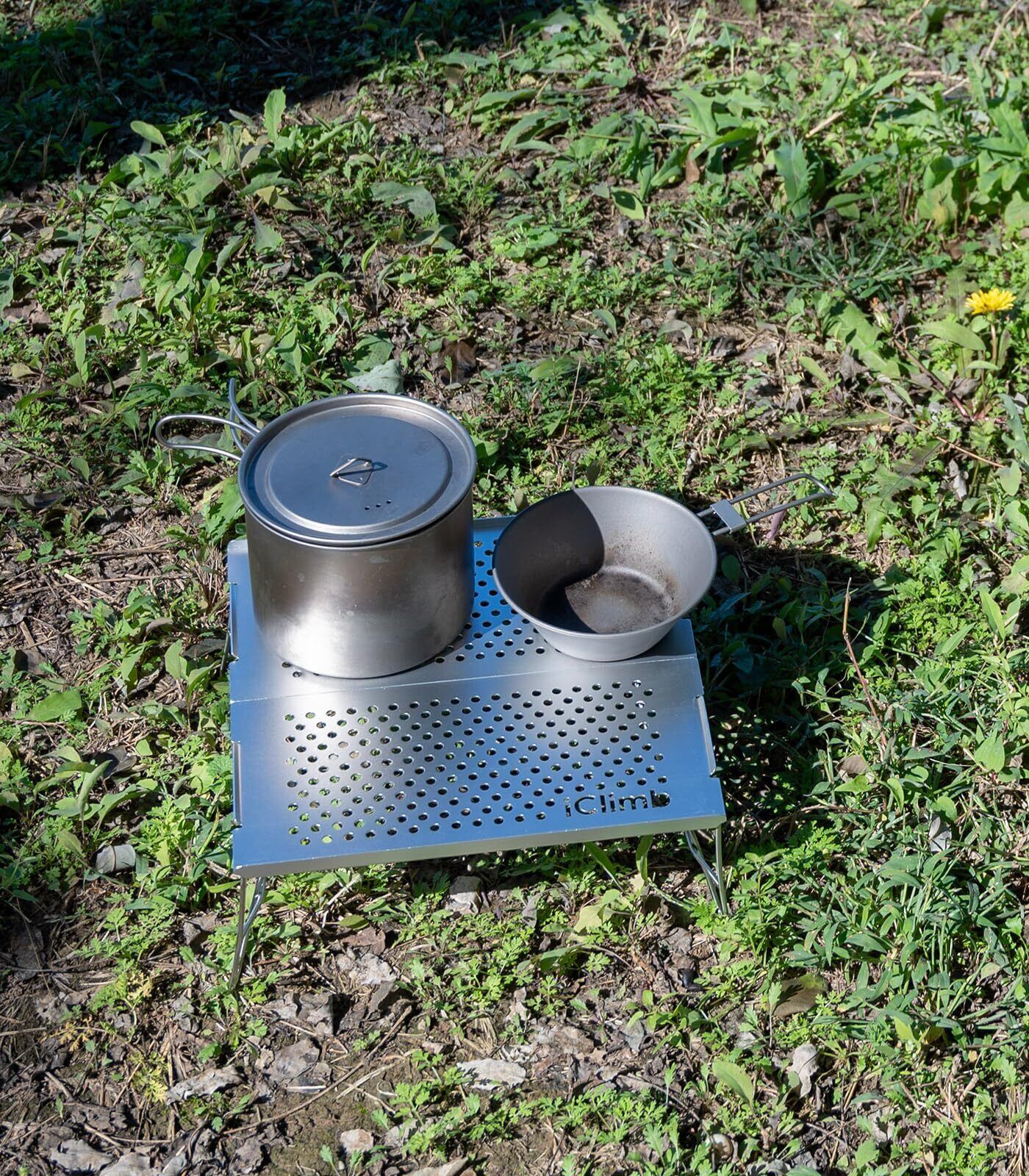 【iClimb(アィクライム)】キャンプ超軽量アルミローテーブル 300g超軽量 ミニサイズ 天板中空デザイン 耐熱 防水 防錆 ステンレス鋼フレーム 安定 耐荷重15kg 折りたたみ コンパクト 携帯便利 傷防止収納袋付き(MINI、天板2枚、シルバー)