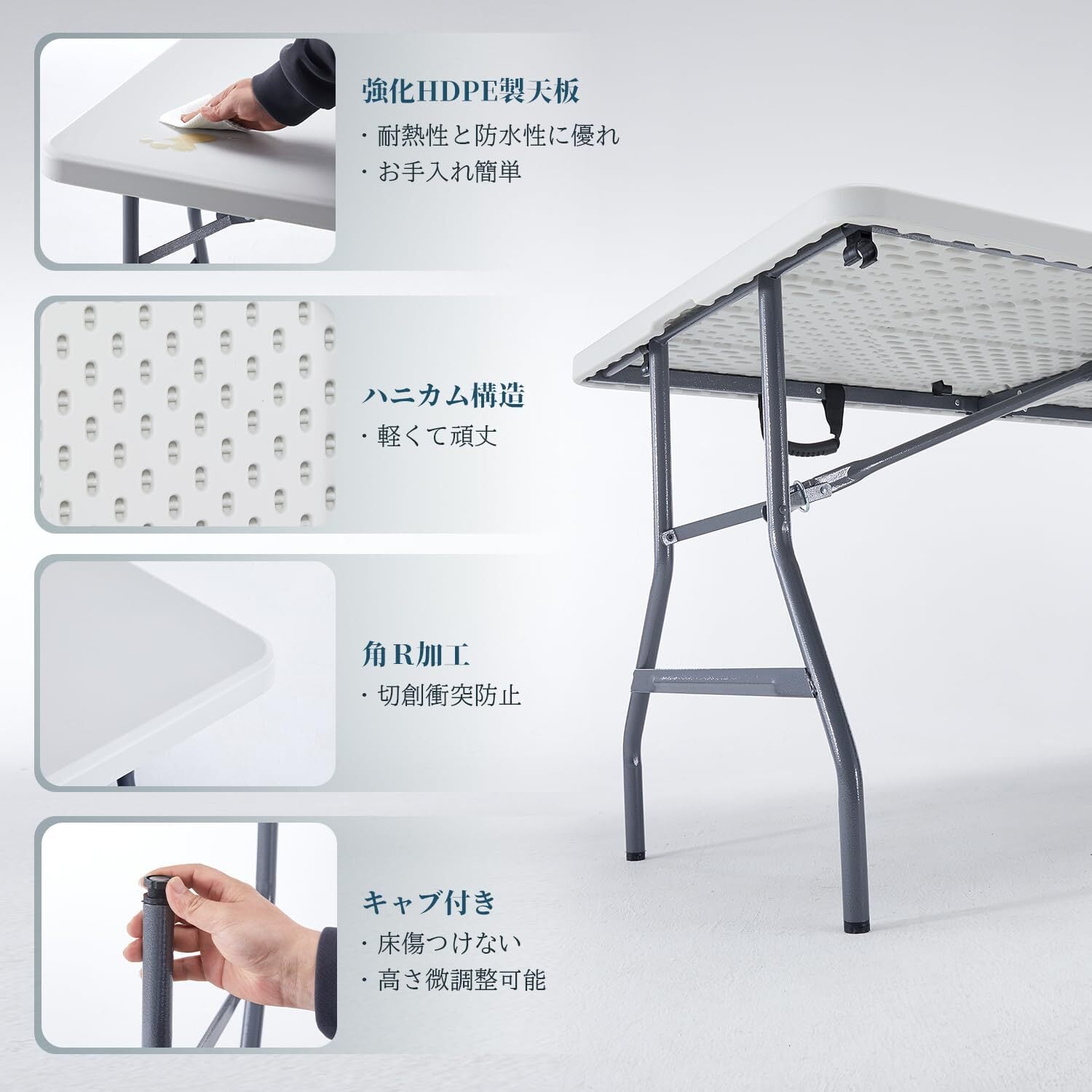 BOOSDEN アウトドア テーブル 折りたたみ 180x74x75cm 大きめ テーブル 組立不要 ダイニングテーブル 作業テーブ 持ち運び コンパクト 食卓 リビングテーブルル 室内/屋外 イベント ホワイト