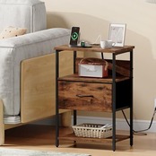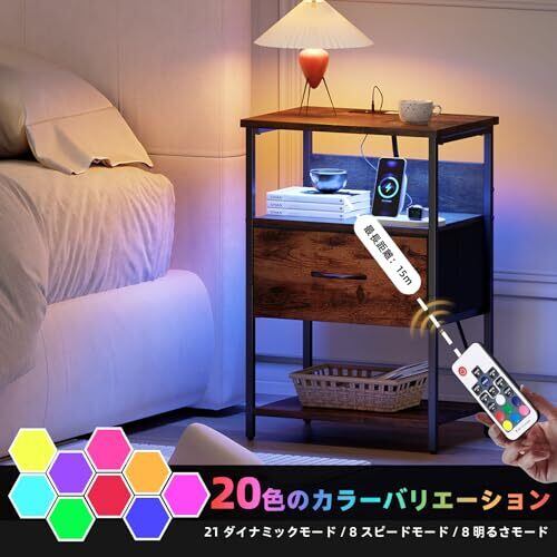 Somdot ベッドサイドテーブル サイドテーブル ナイトテーブル LED night table チェスト タンス 収納 おしゃれ USBポート&コンセント付き 3段オープン棚付き 引き出し 幅40 奥行30 高60 布製 リビング ソファー 一人暮らし ビンテージ