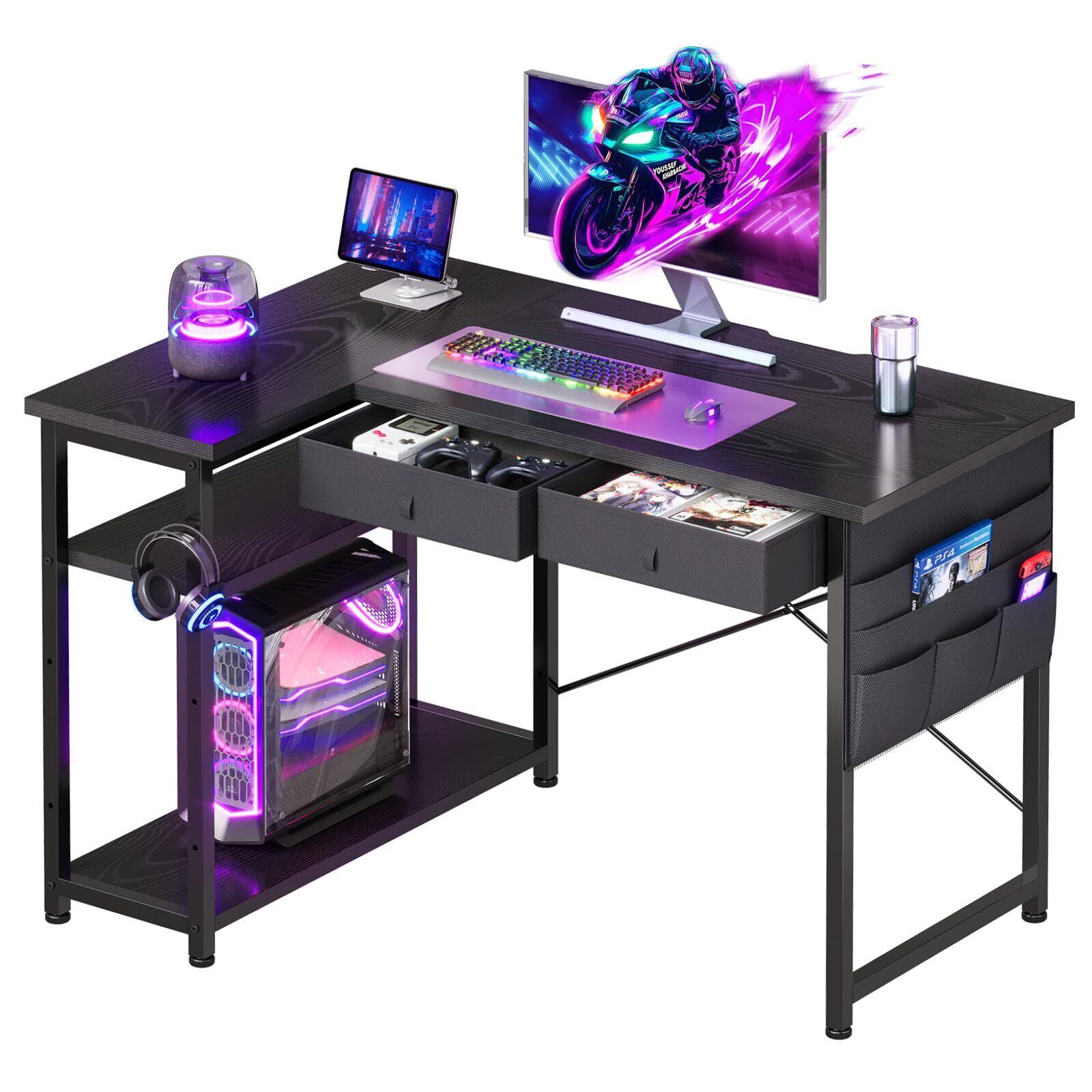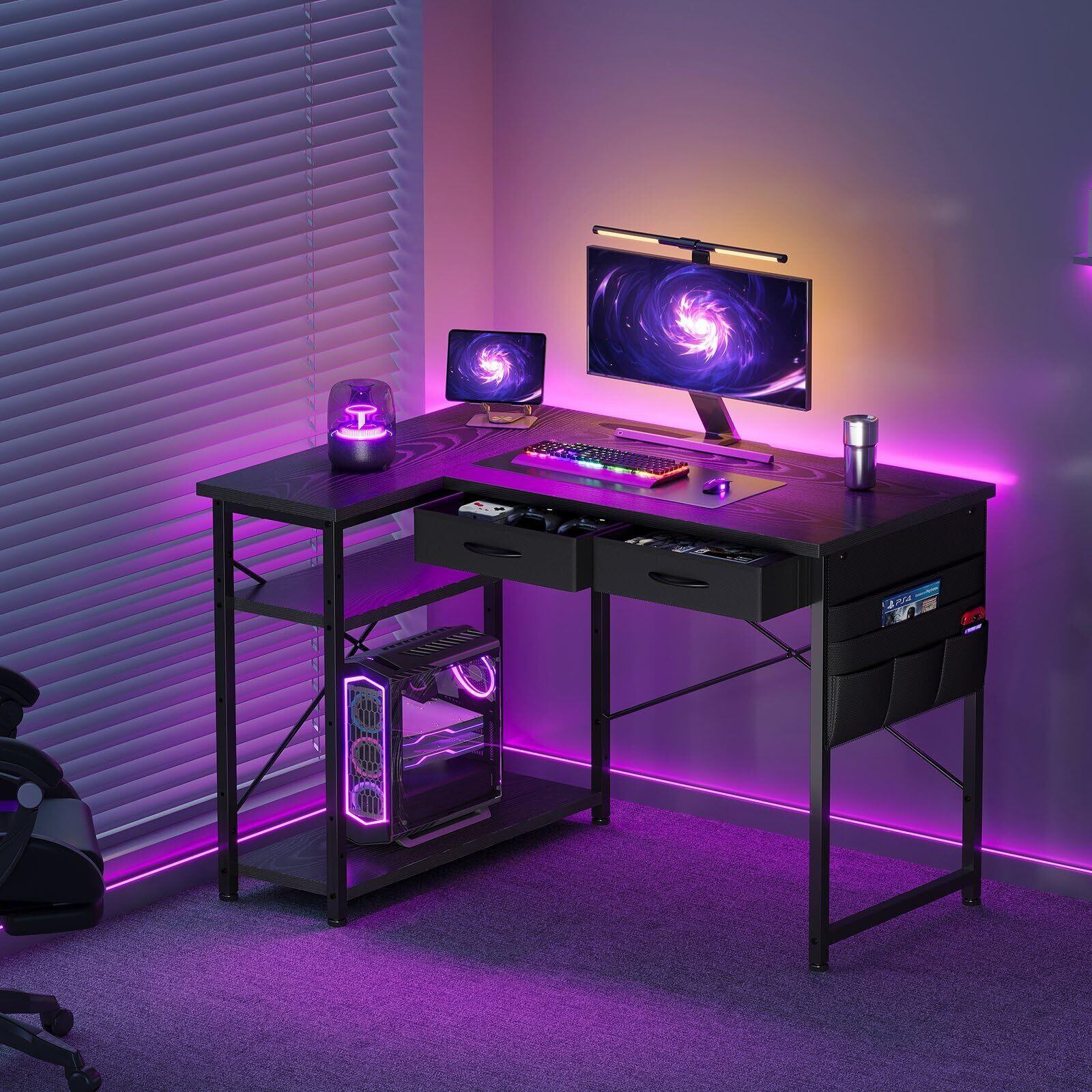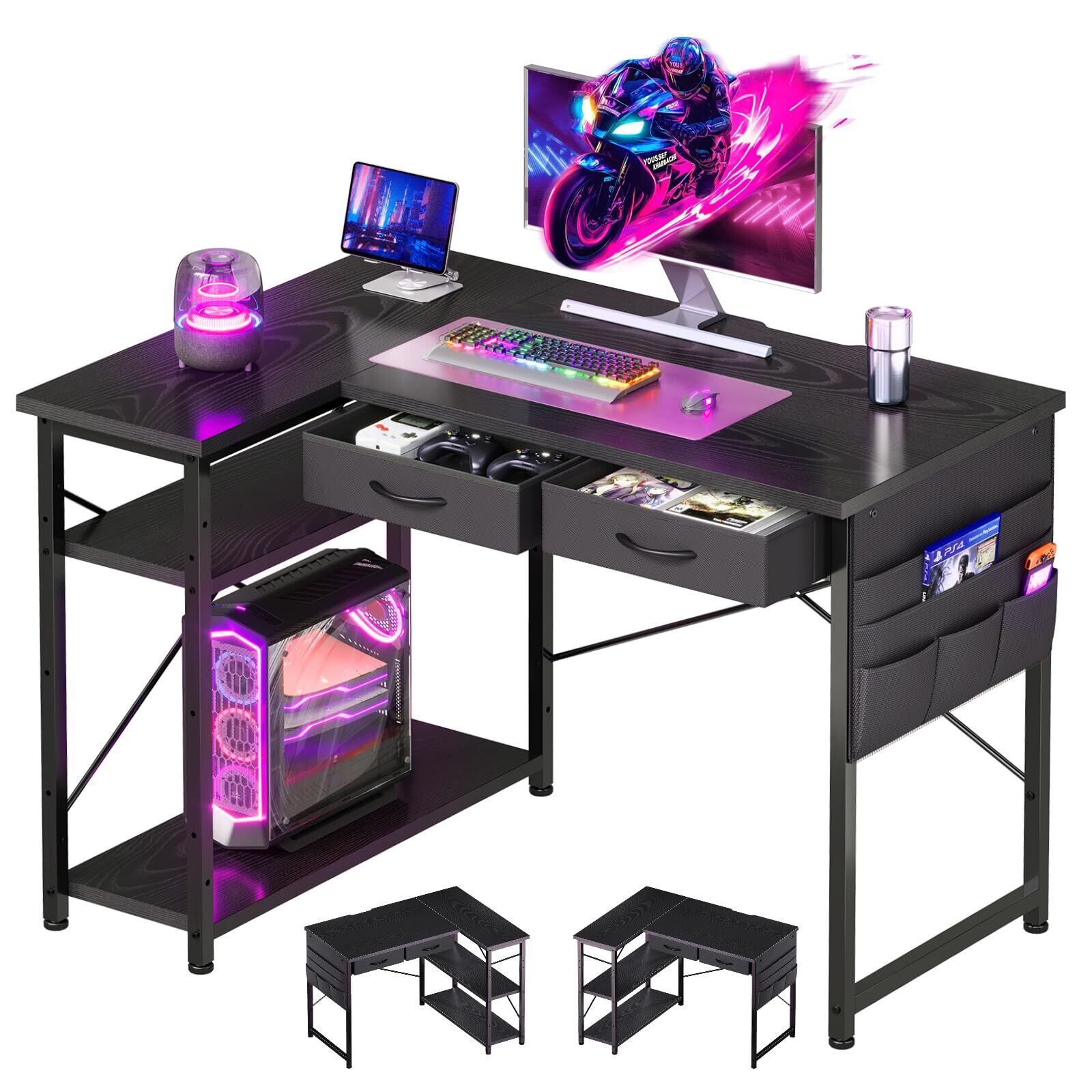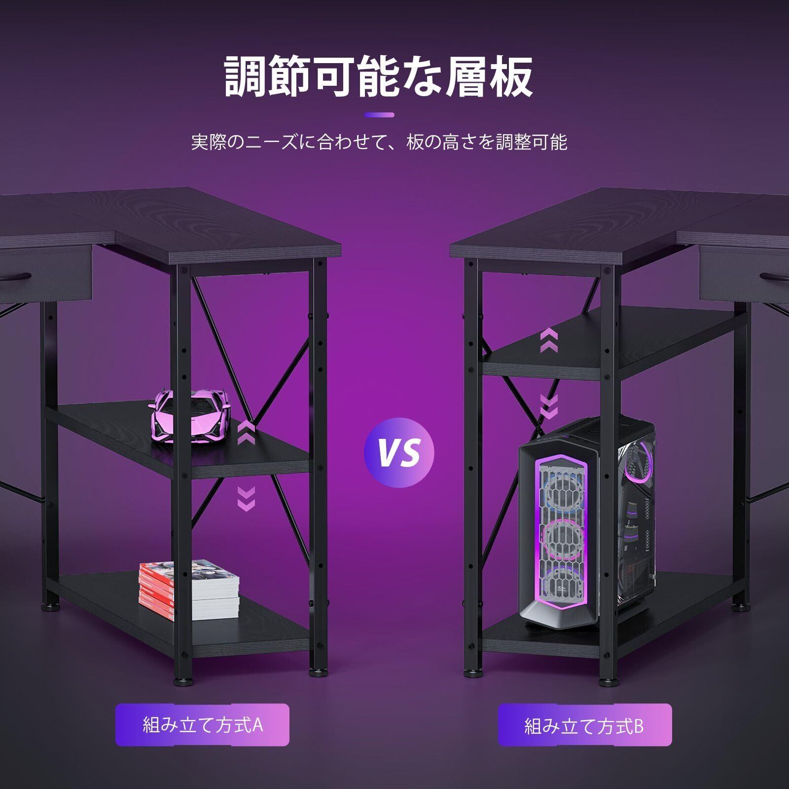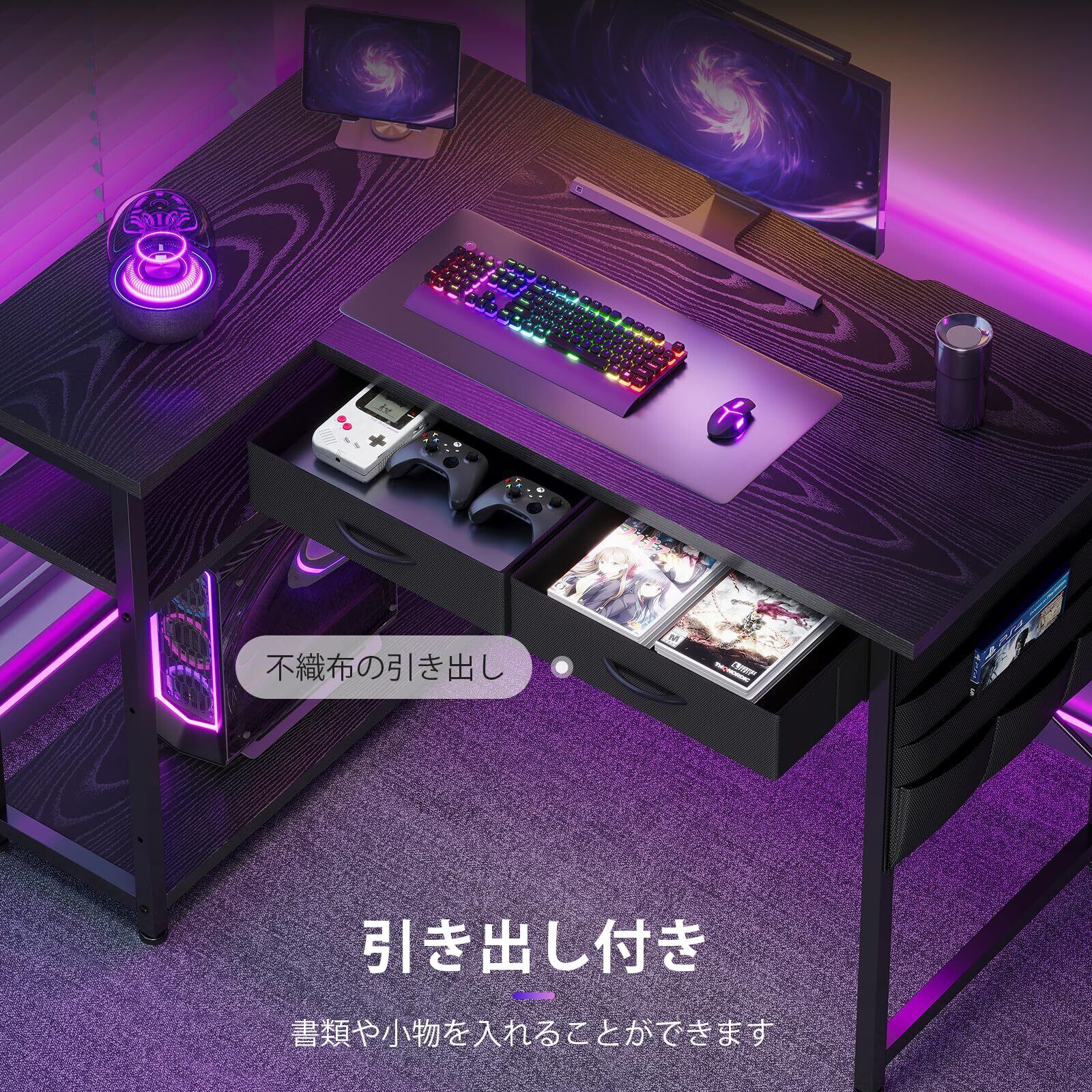 Maihail ゲーミングデスク l字デスク机pcデスク パソコンデスク 幅100cm×奥行45cm つくえ 勉強机学習机 左右入替可 布製引き出し付き オフィスデスク ワークデスク 収納ラック ダークブラウン