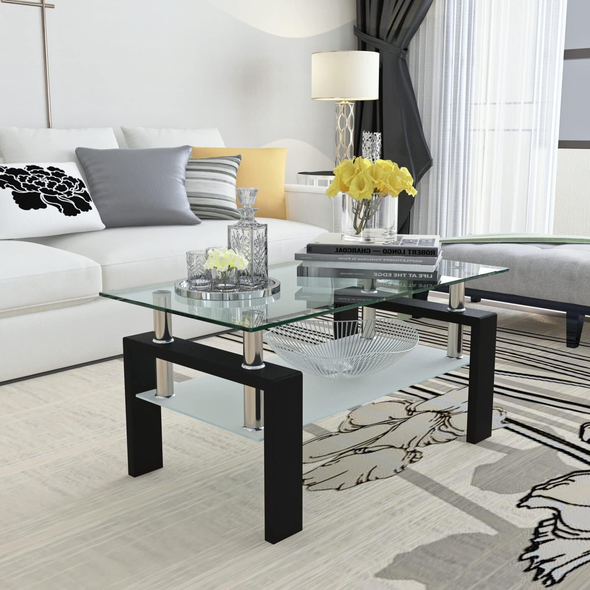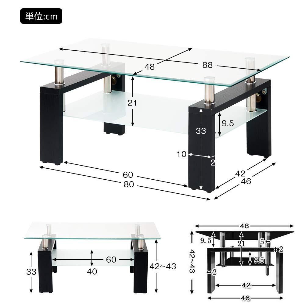 ガラステーブル 強化ガラス天板 ローテーブル センターテーブル リビングテーブル モダン シンプル ガラス 北欧 (クリア天板+ブラック脚)