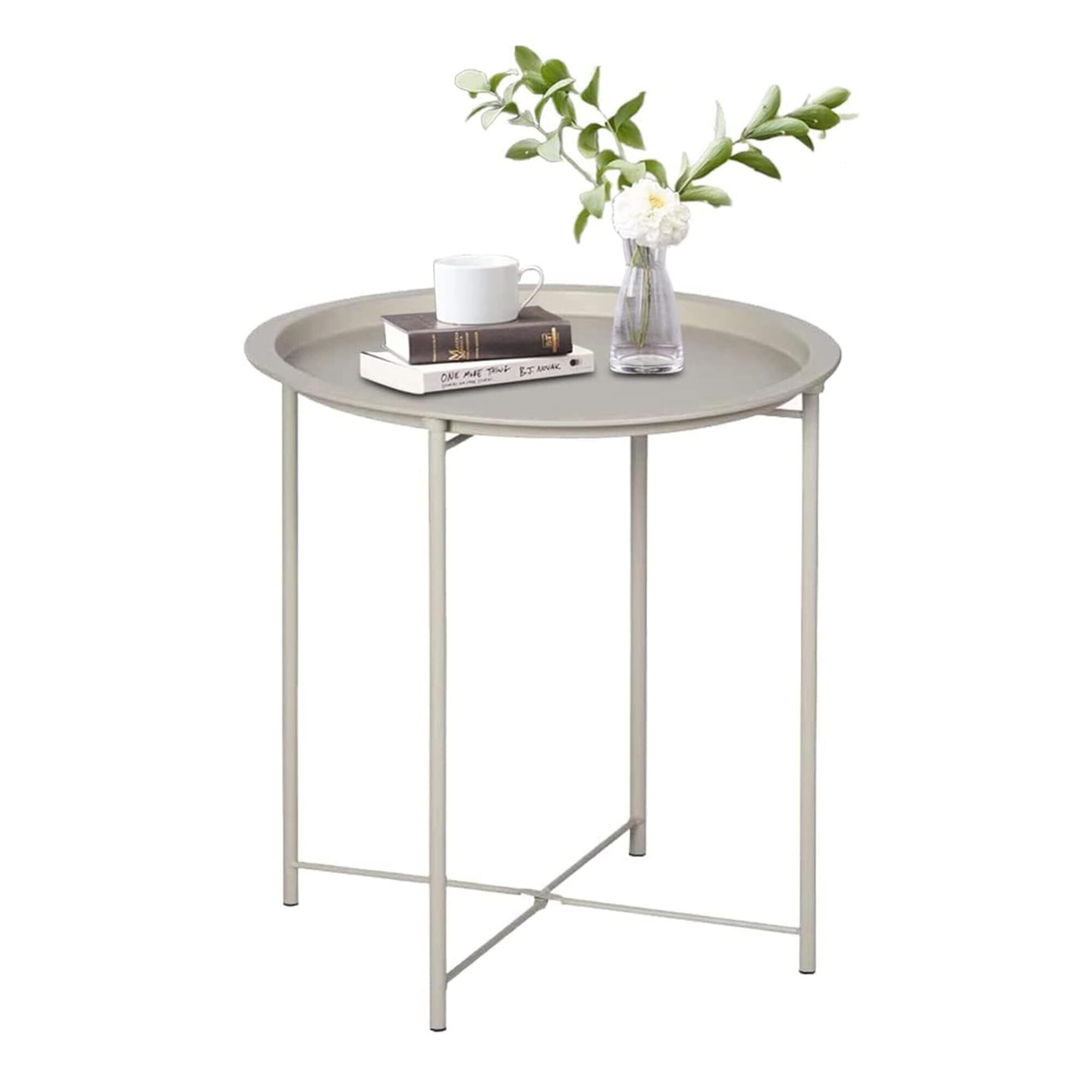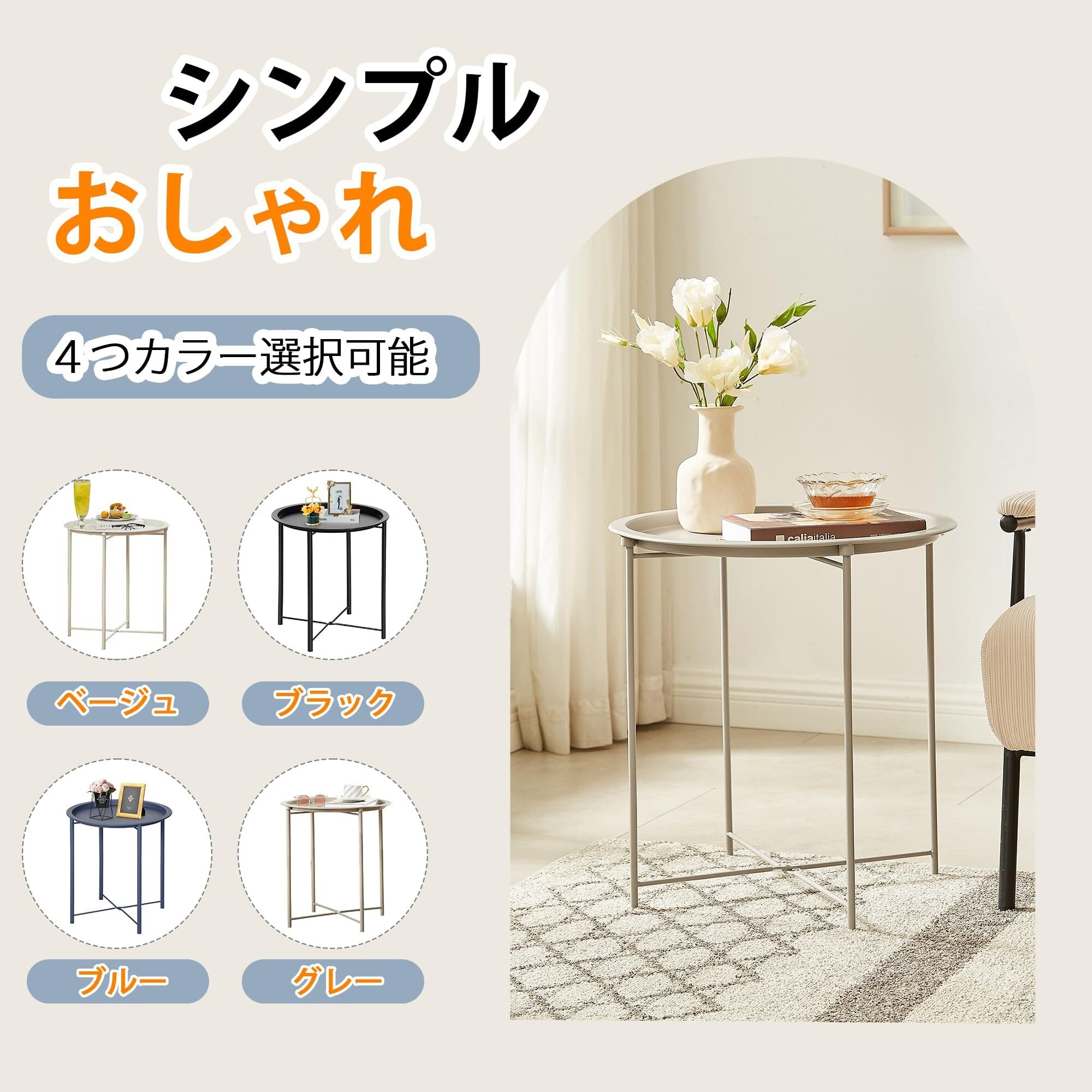 VECELO サイドテーブル トレイテーブル 折りたたみサイドテーブル ソファサイドテーブル コーヒーテーブル グレー 47×47×50.5cm 丸 北欧 おしゃれ ソファ横 お洒落 シンプル 【日本正規輸入品】
