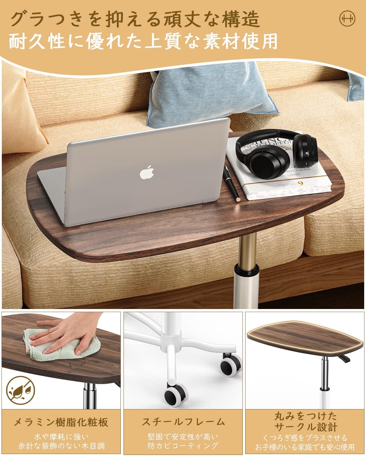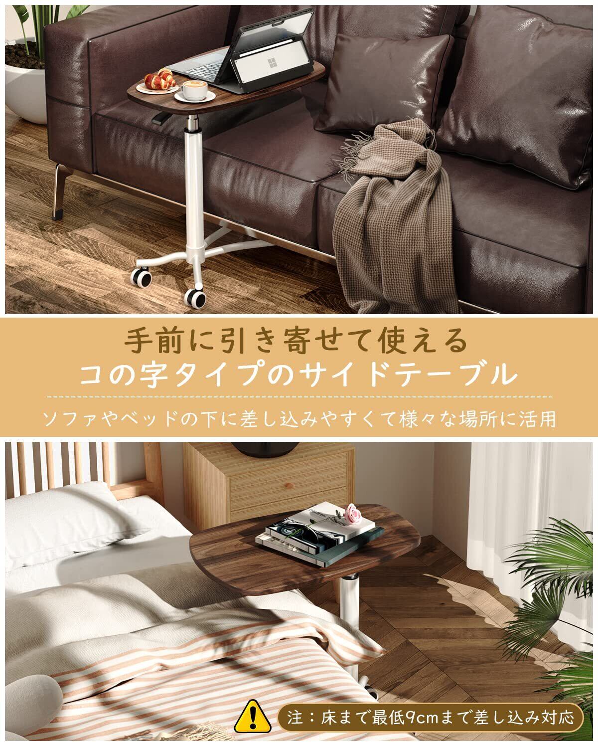 サイドテーブル Housolution ソファナイトテーブル 昇降式サイドテーブル ベッドサイドテーブル コ字型 ミニテーブル キャスター付き レバー昇降式 550~810mm高さ調整 600*385mm楕円形天板 ベッドやソファの下に差し込む 組み立て簡単 木目調 Brown
