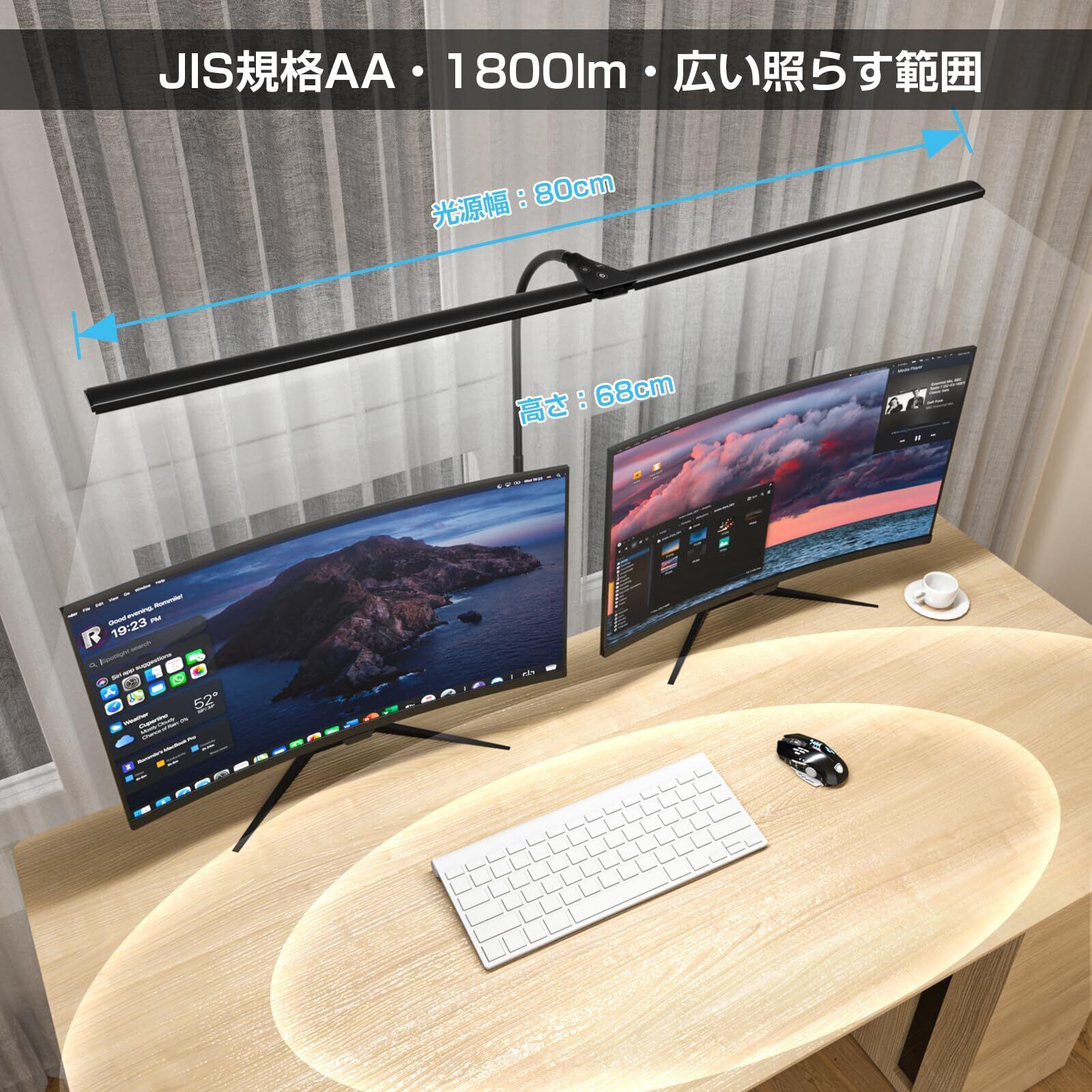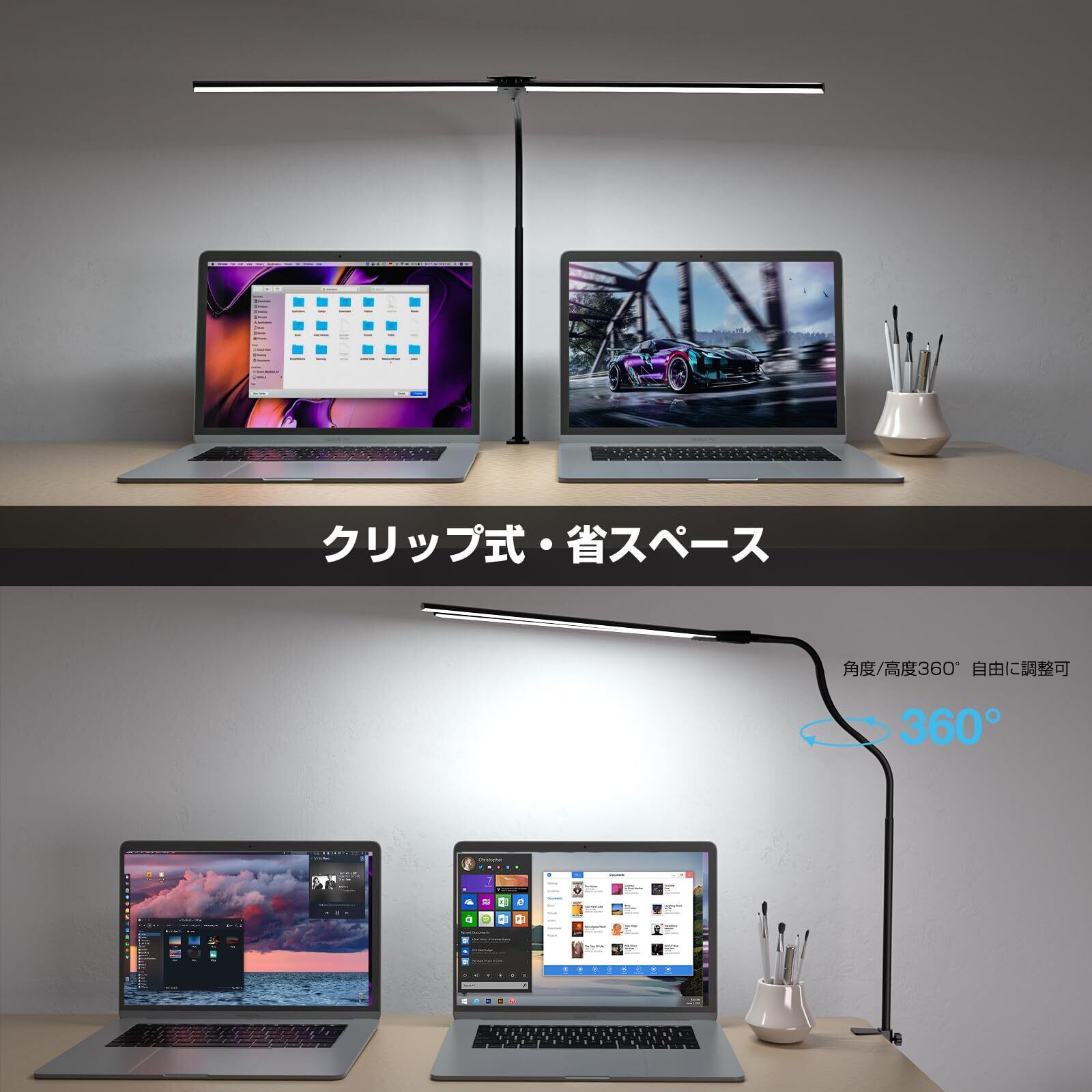 Wobane デスクライト LED 1800lm 目に優しい 電気スタンド【80cm幅・ダブル光源・5段階調色・無段階調光・Ra95高演色性】明るい デスクスタンド おしゃれ 卓上ライト クランプ式 省エネ 角度調節可能 テーブルライト 独立ボタン 簡単操作 PC作業・仕事・寝室・勉強・読書 間接照明 ledライト PSE認証済 ACアダプター付き