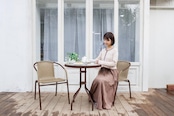 お庭でくつろぐときに合ったらうれしいダイニングテーブル。ガラス天板のため、飲み物や何かこぼしても汚れがふき取りやすく、長く清潔に保つことが出来ます。