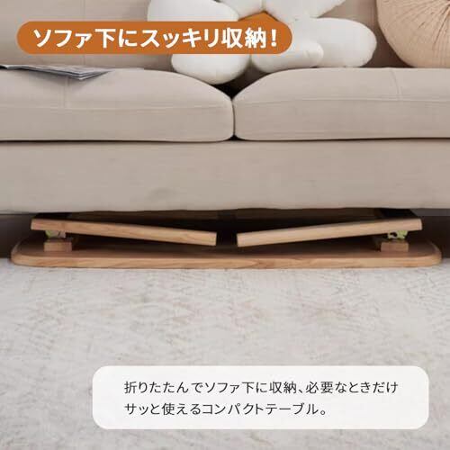 【簡単折りたたみ&収納便利】ワンタッチで簡単に折りたたむことができ、使用しない時はソファやベッドの下にスッキリ収納できます。掃除や来客時にもサッと広げて使える便利な設計です。サイズ:(W)幅80×(D)奥行50×(H)高さ45cm 折りたたみ時の厚み約10cm 天板厚:約18mm 材質:MDF、ブナ無垢材