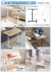 「様々なシーンで活躍する」ソファサイドではパソコンデスクとして、ベッドサイドではベッドテーブルとしてお使いいただけます。座椅子と合わせてフロアスタイルで楽しんだり、立って使えばスタンディングデスクとしても活躍できます。